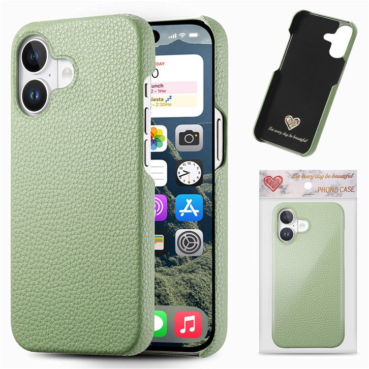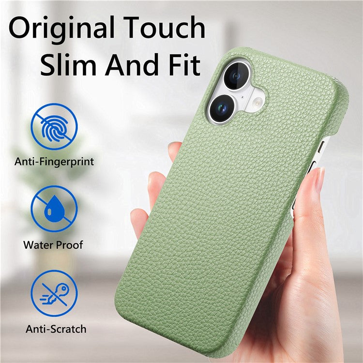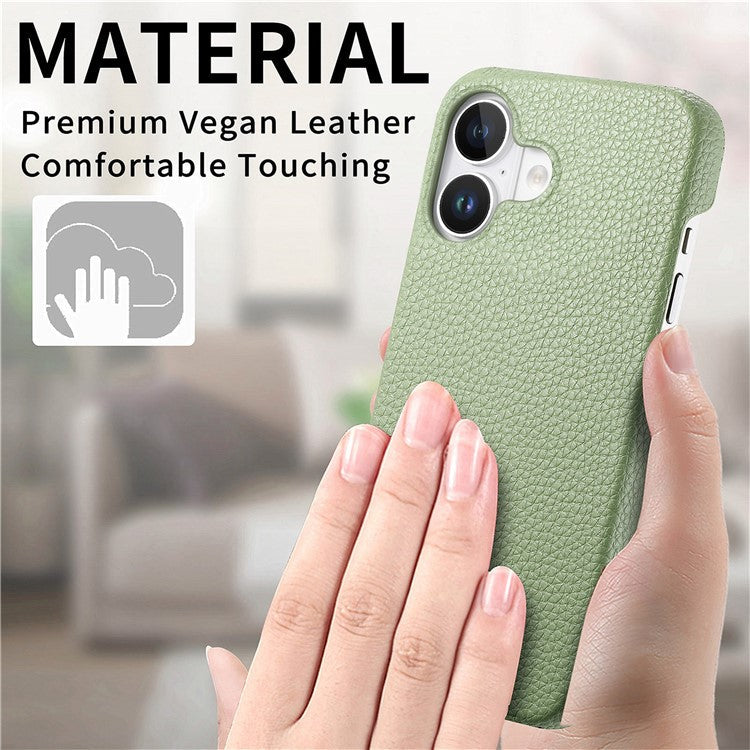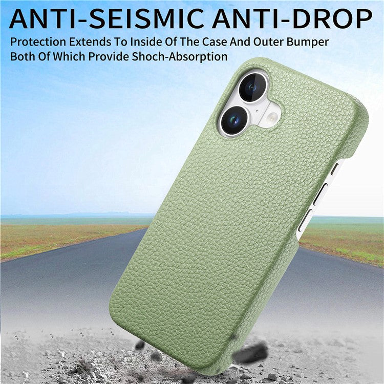 Y1 For iPhone 16 Case Shockproof Litchi Texture Leather+PC Phone Cover - Matcha Green