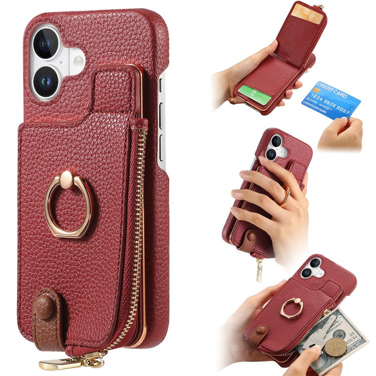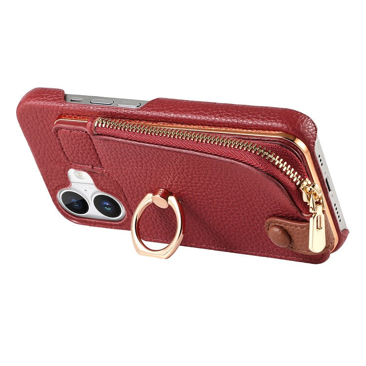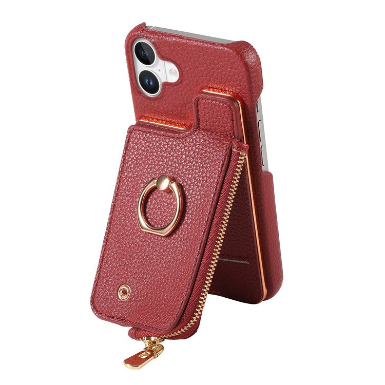 Y3 For iPhone 16 Plus Case Card Holder Kickstand Leather+TPU Phone Cover with Zipper Pocket - Red
