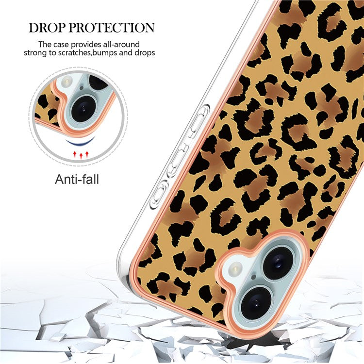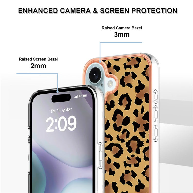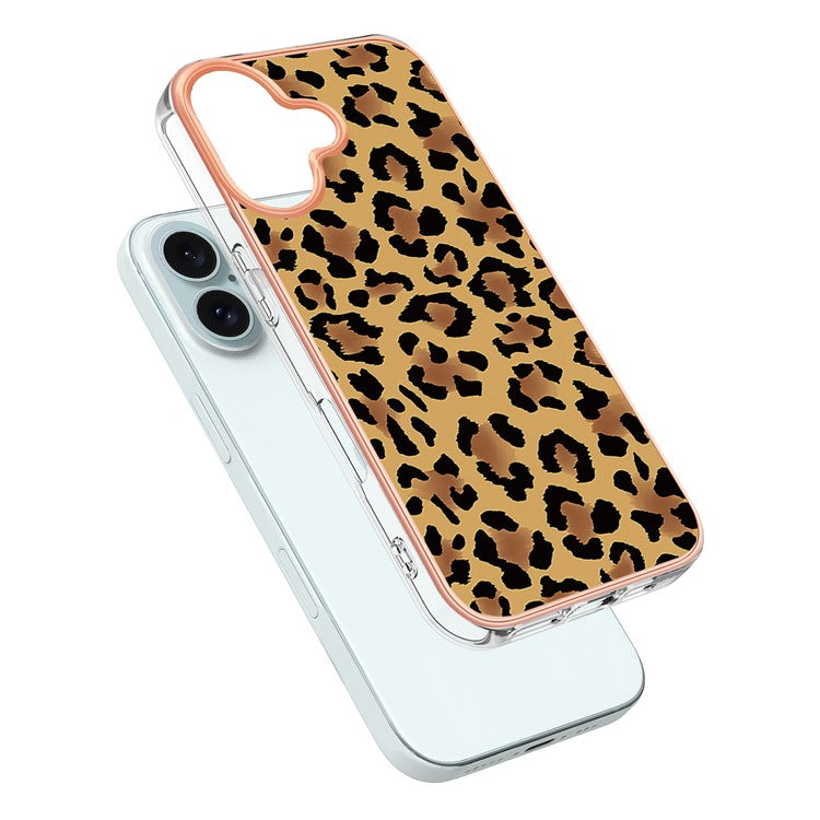YB IMD Series-16 Style-E For iPhone 16 Plus TPU Case Pattern Printing Phone Back Cover - Leopard Print
