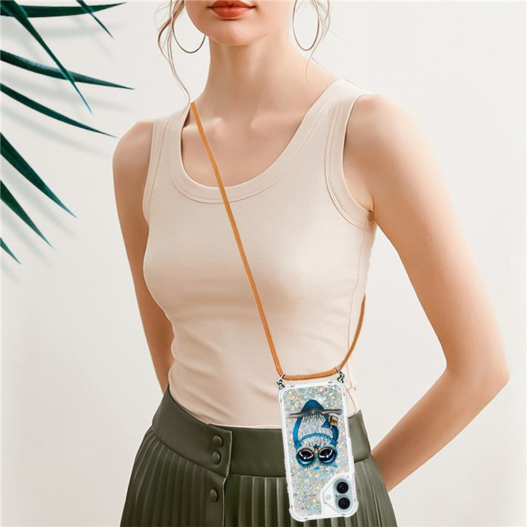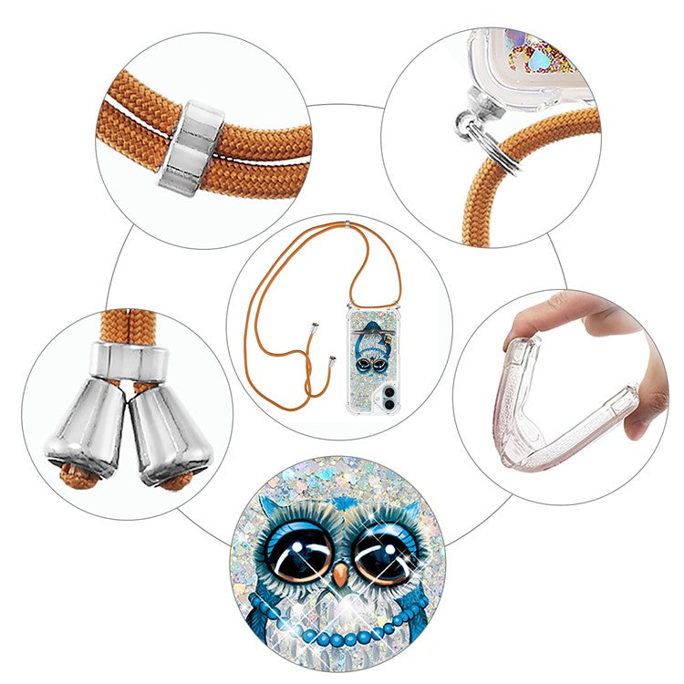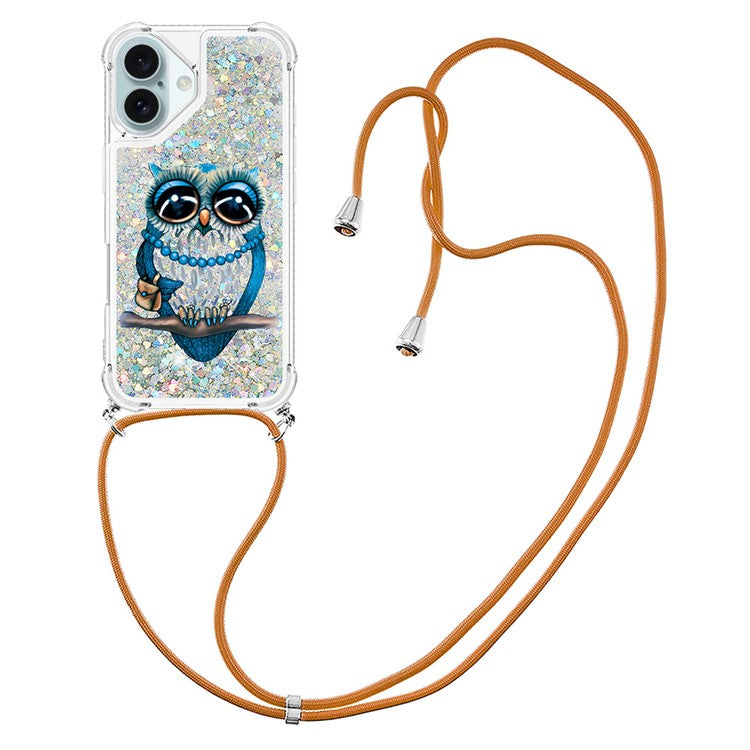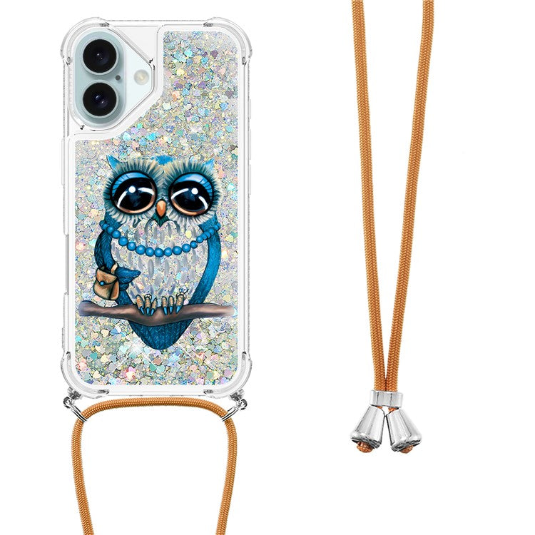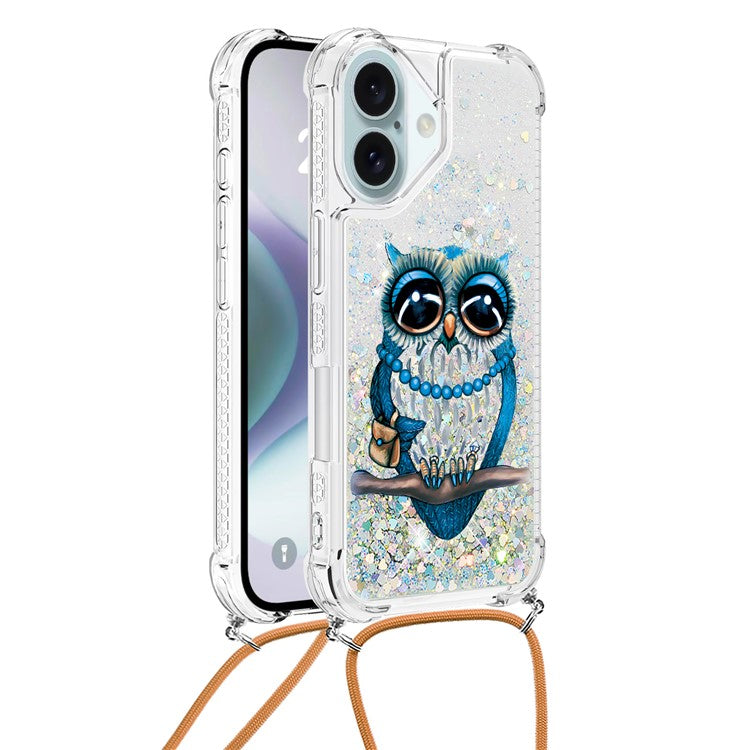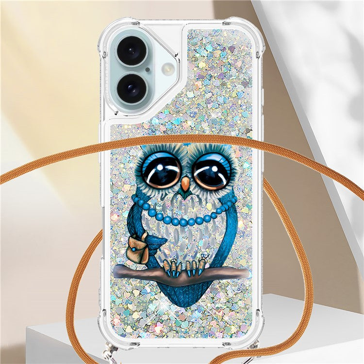 YB Quicksand Series-5 for iPhone 16 TPU Case with Lanyard Pattern Print Phone Cover - Owl