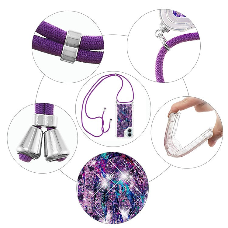 YB Quicksand Series-5 for iPhone 16 TPU Case with Lanyard Pattern Print Phone Cover - Wind Chimes