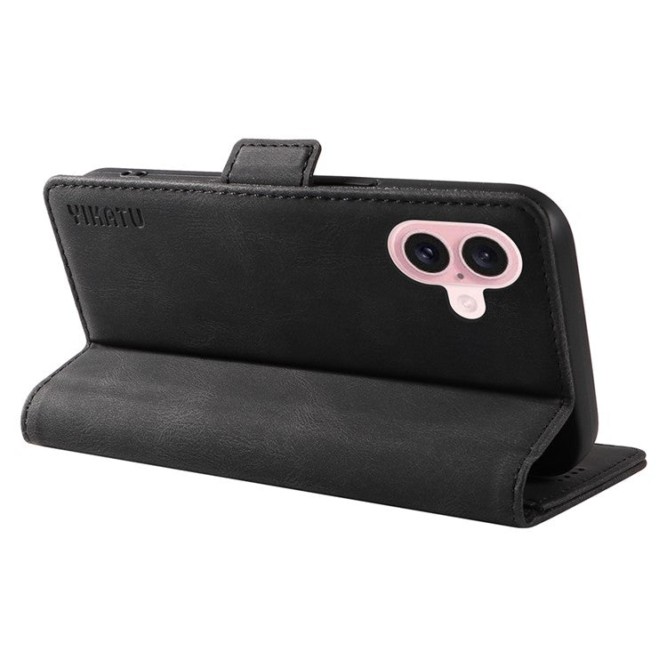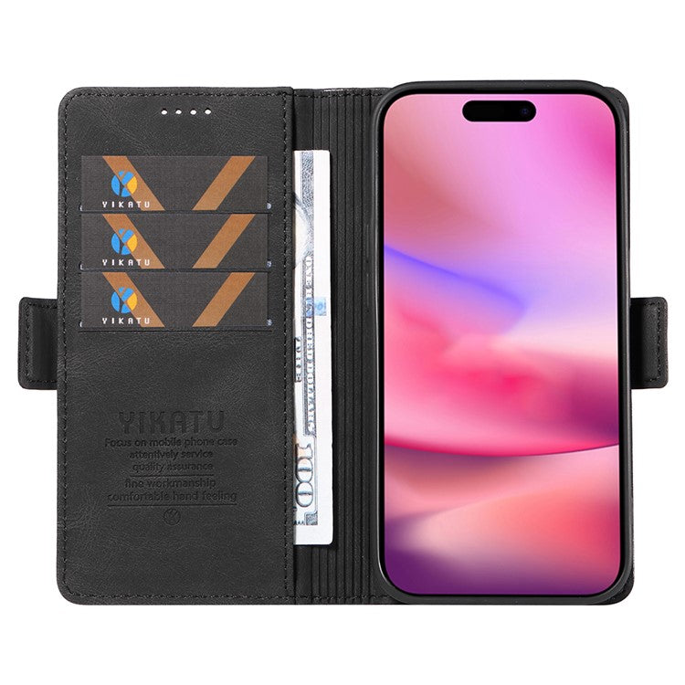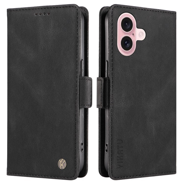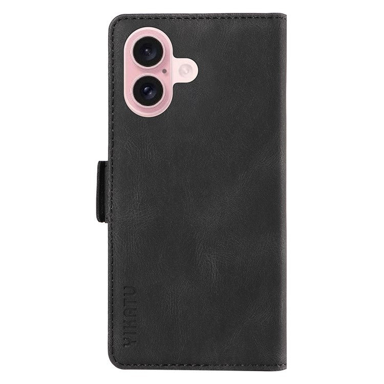 YIKATU YK-005 For iPhone 16 Case PU Leather Wallet Phone Cover Skin-Touch Feeling - Black