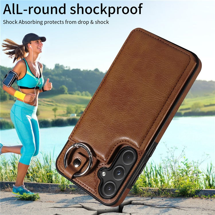 003 For Samsung Galaxy A55 5G Case Card Slots Ring Kickstand PU Leather+TPU Phone Cover - Brown