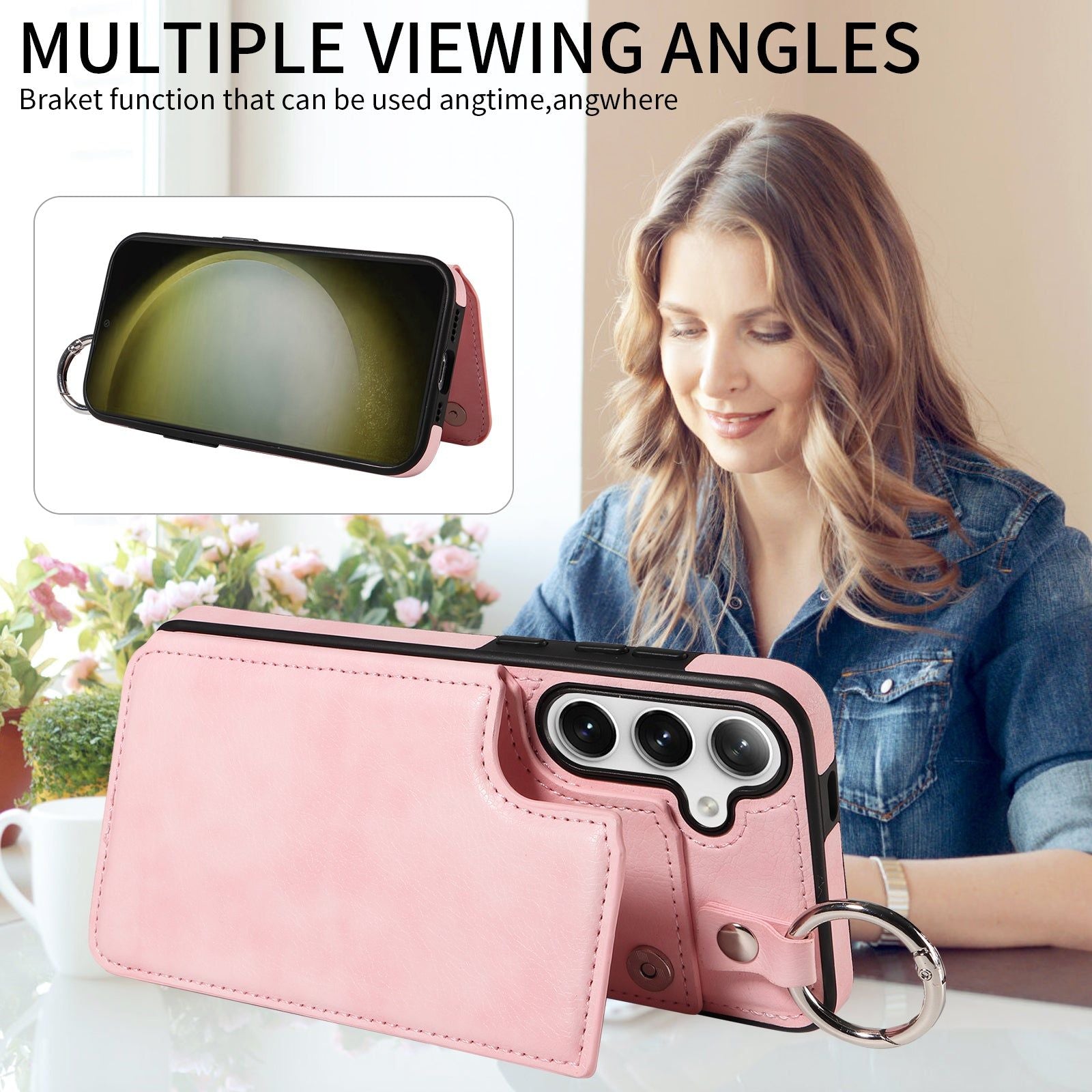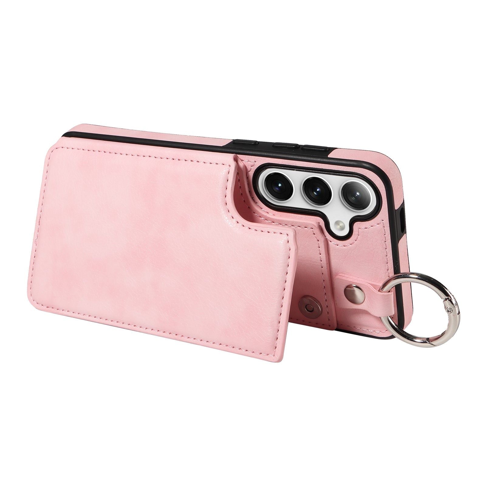 003 For Samsung Galaxy S24 Case Litchi Texture PU Leather Phone Cover with Ring Buckle - Pink - UNIQKART