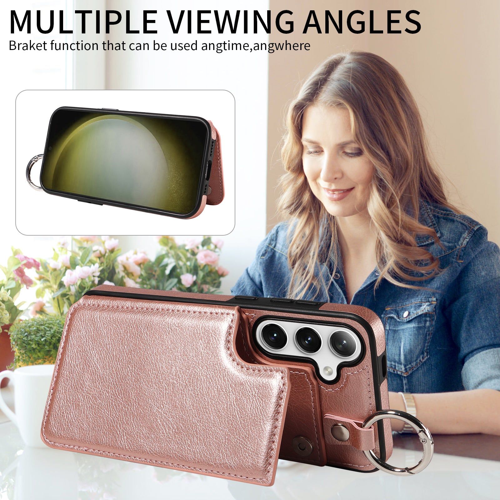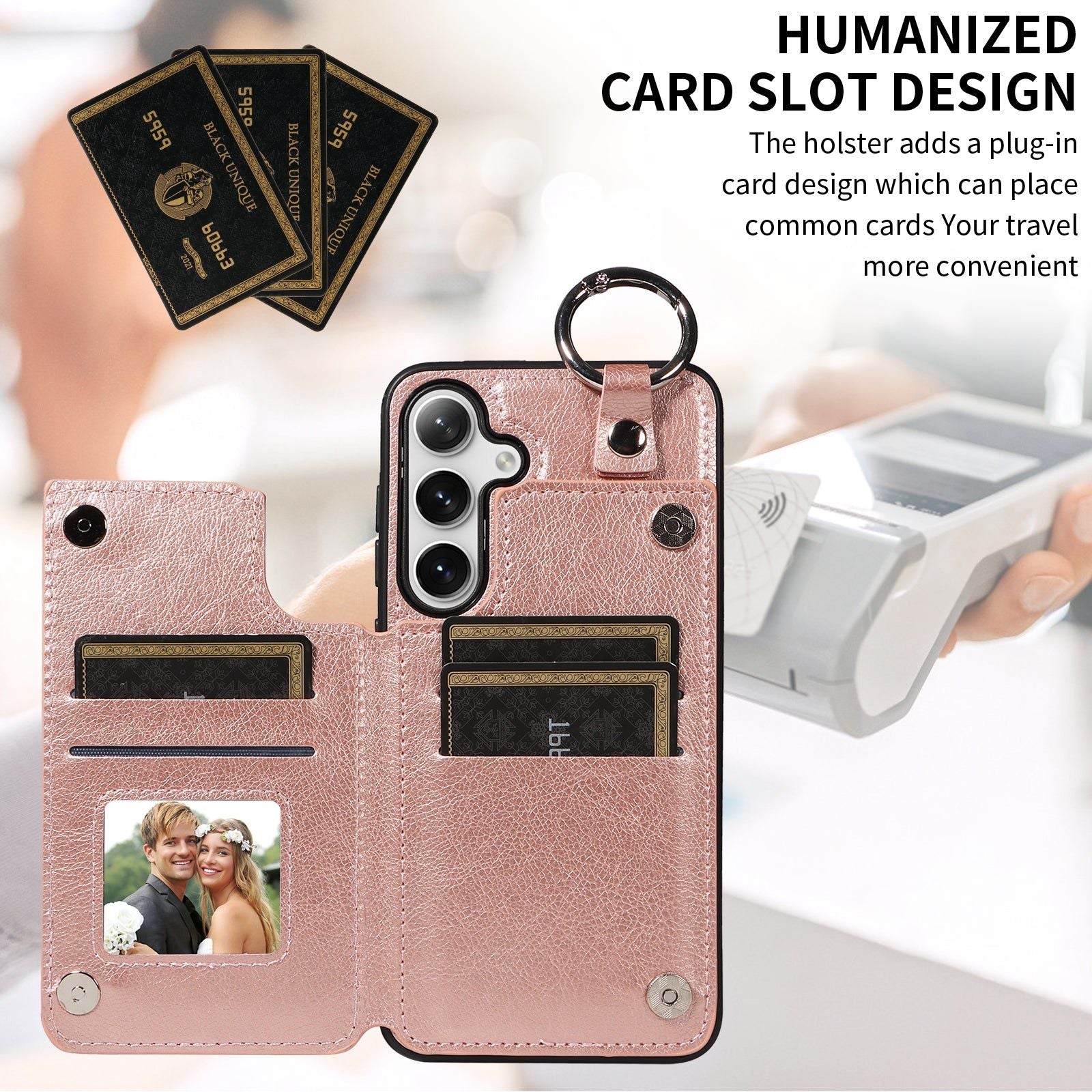 003 For Samsung Galaxy S24 Case Litchi Texture PU Leather Phone Cover with Ring Buckle - Rose Gold - UNIQKART