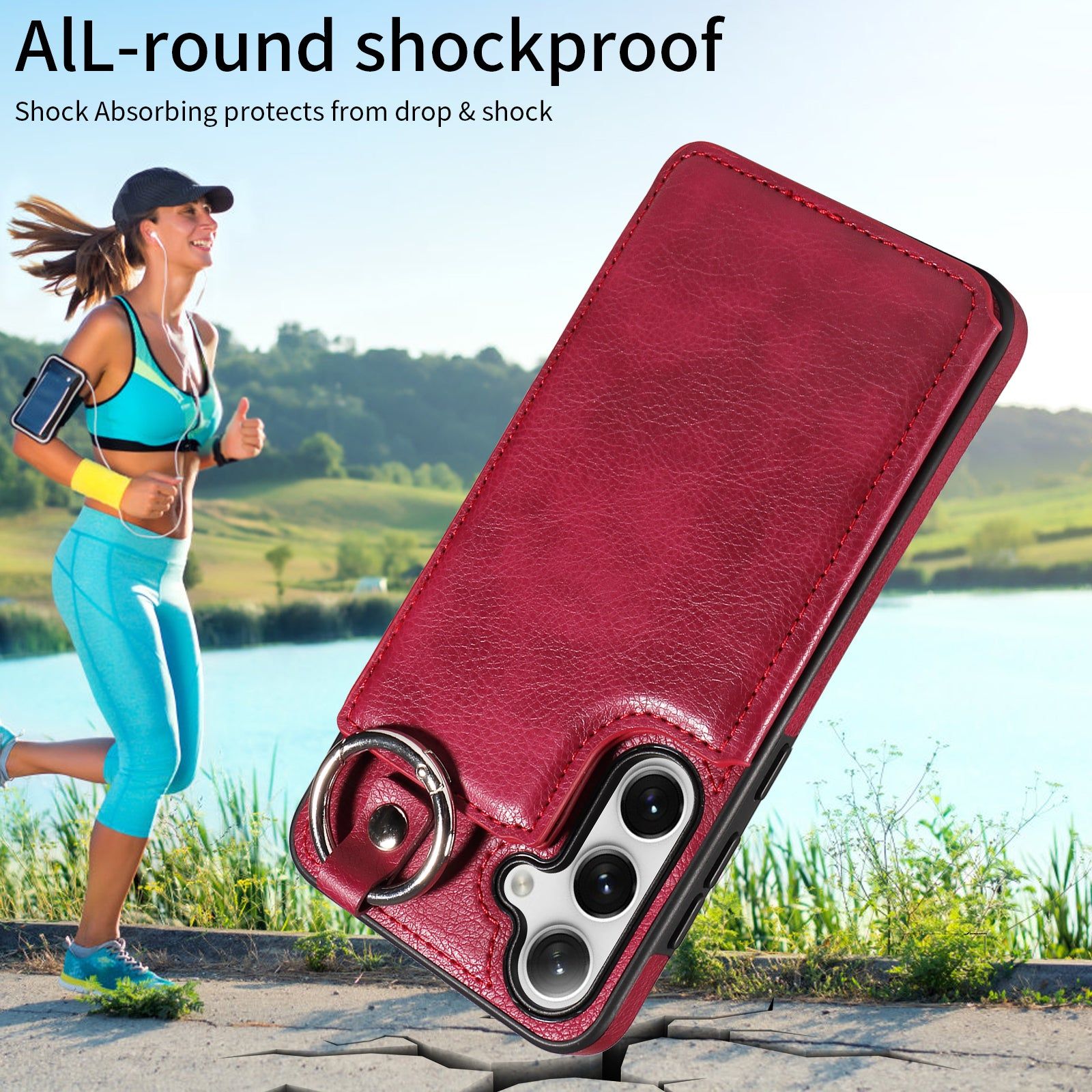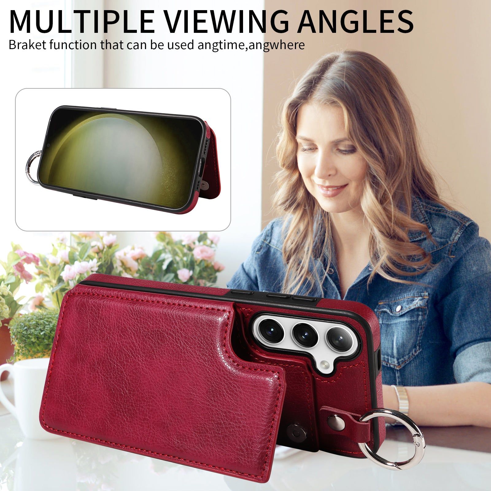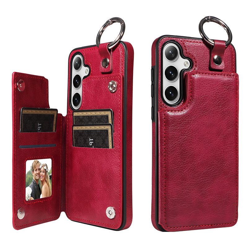 003 For Samsung Galaxy S24 Case Litchi Texture PU Leather Phone Cover with Ring Buckle - Wine Red - UNIQKART