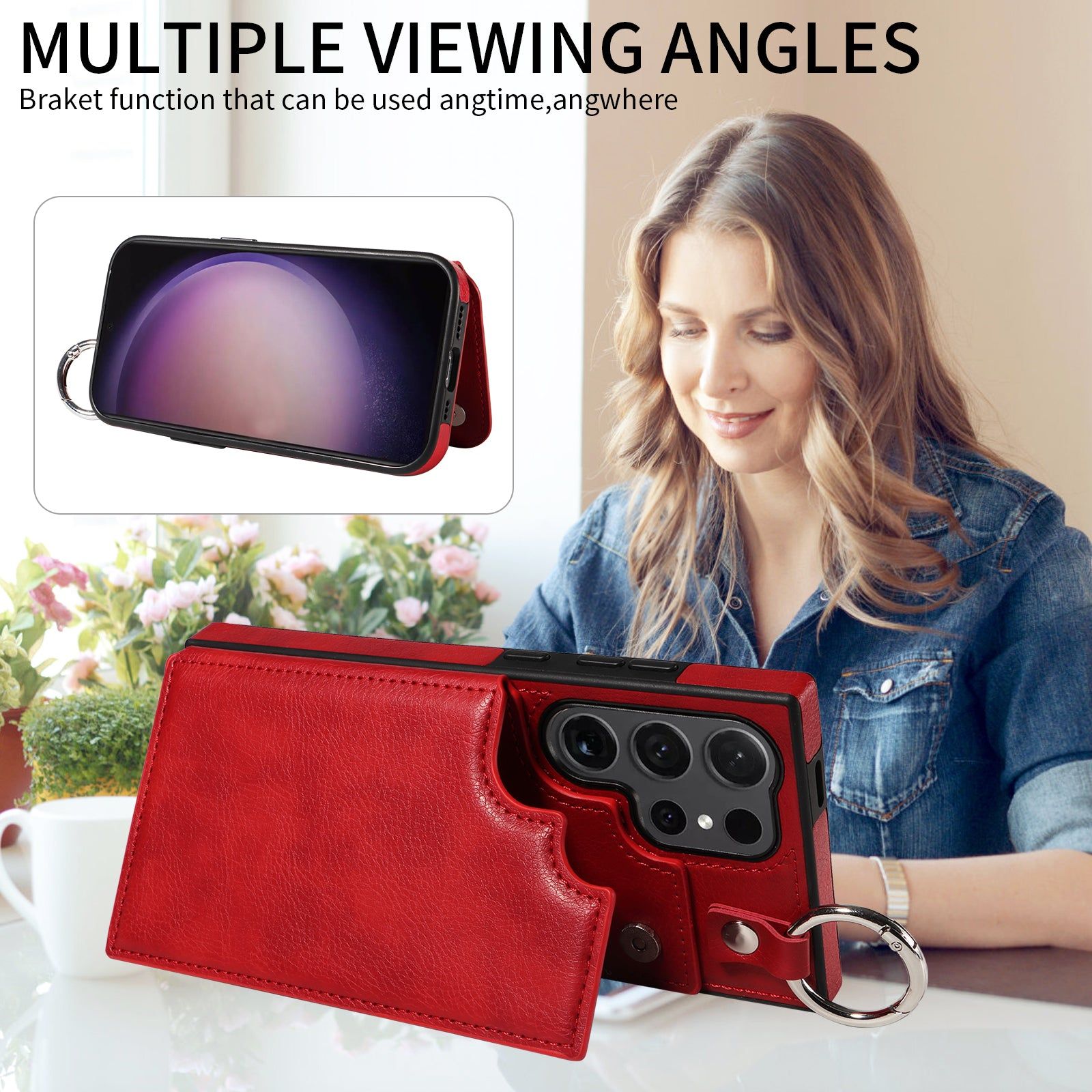 003 For Samsung Galaxy S24 Ultra Case Leather+TPU Phone Cover with Card Holder - Red - UNIQKART