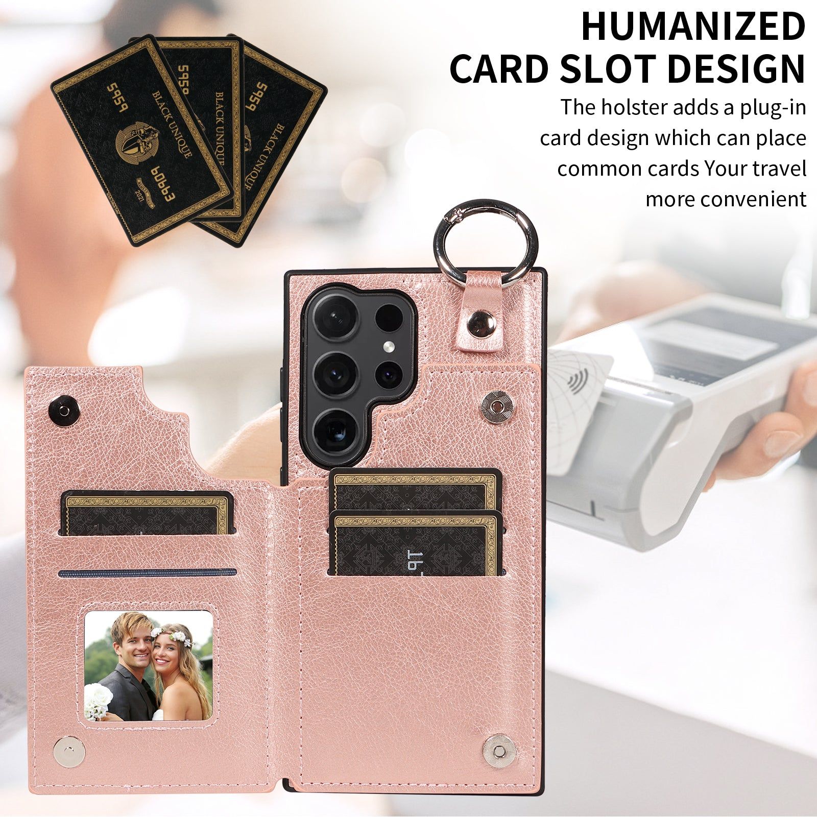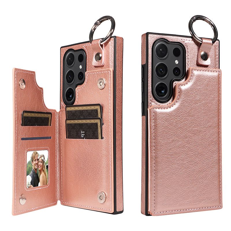 003 For Samsung Galaxy S24 Ultra Case Leather+TPU Phone Cover with Card Holder - Rose Gold - UNIQKART