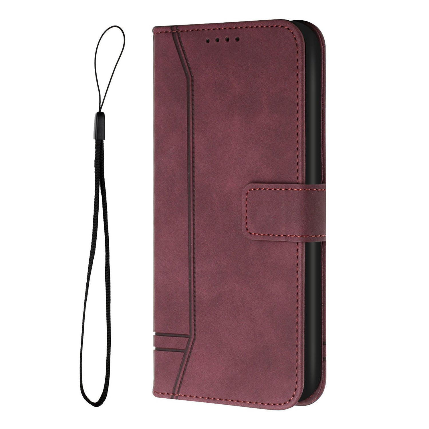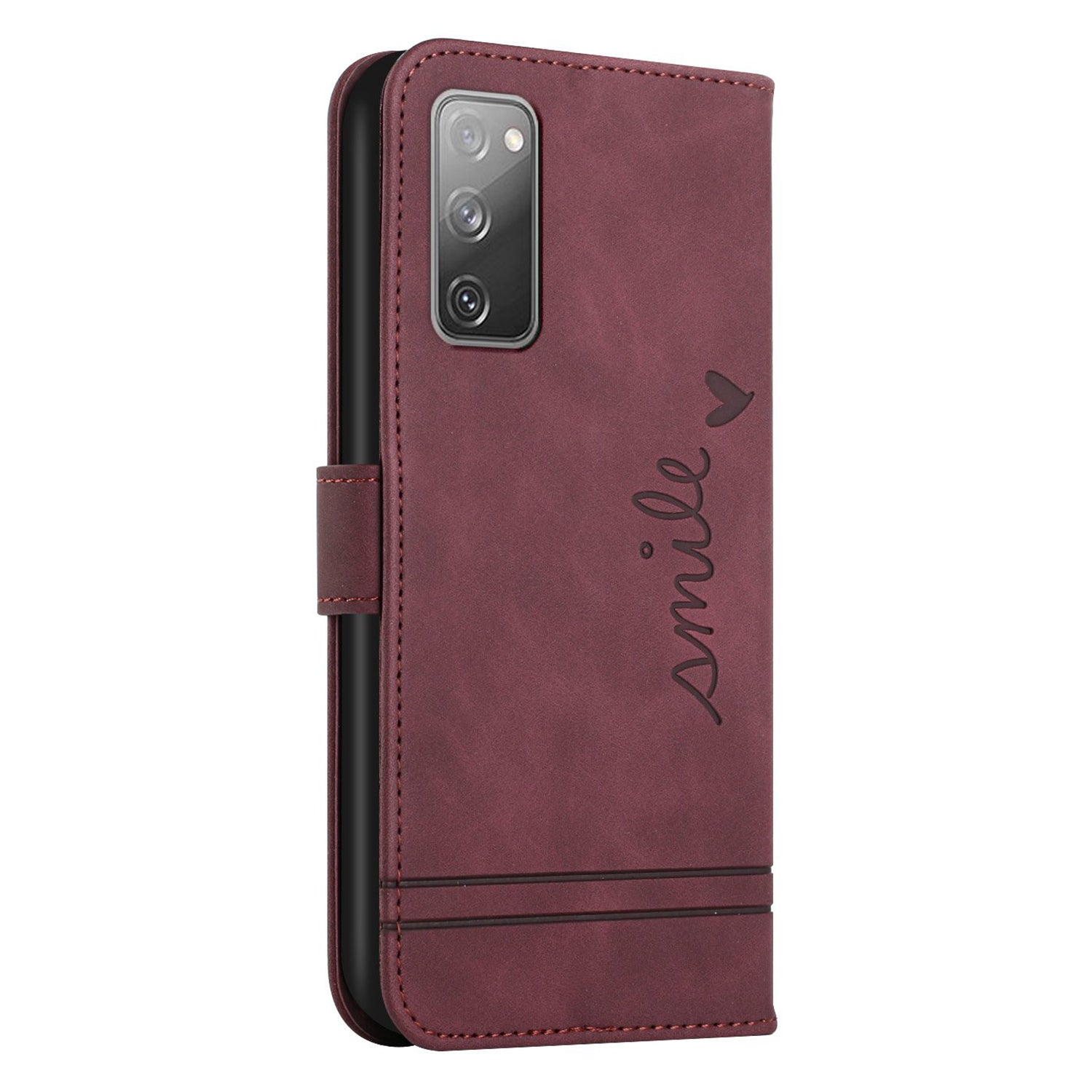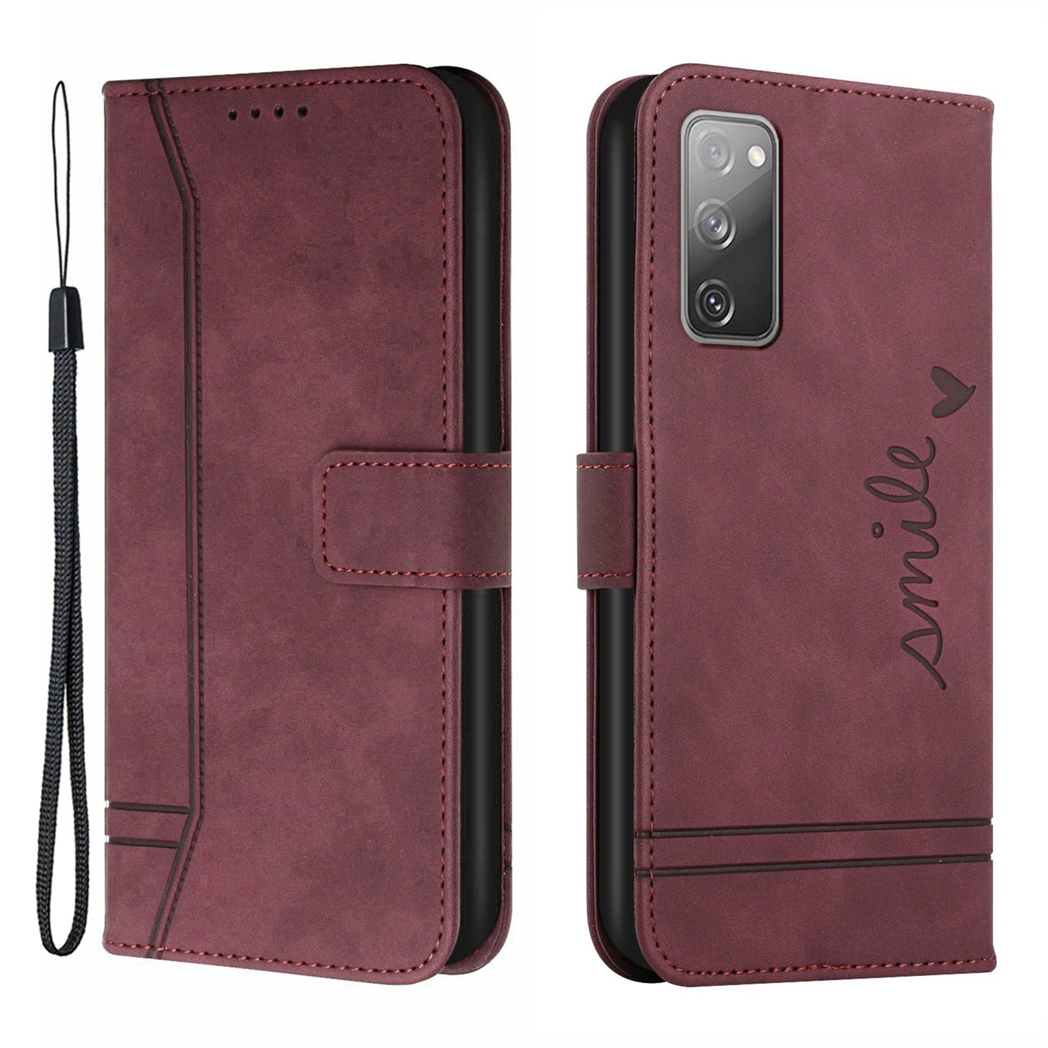 003 Series Imprinted Heart Shape Pattern Skin-touch PU Leather Stand Wallet Flip Cover with Strap for Samsung Galaxy S20 FE 2022/S20 FE/S20 FE 5G/S20 Lite - Wine Red