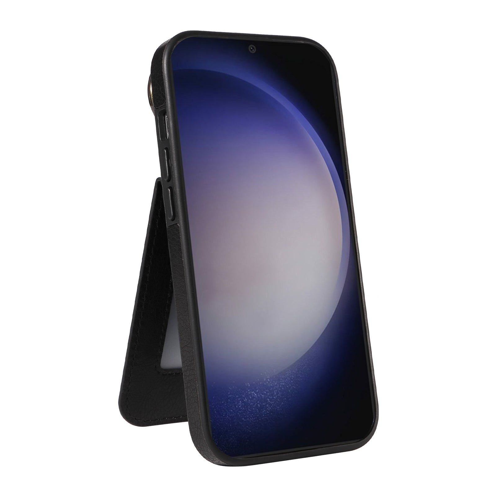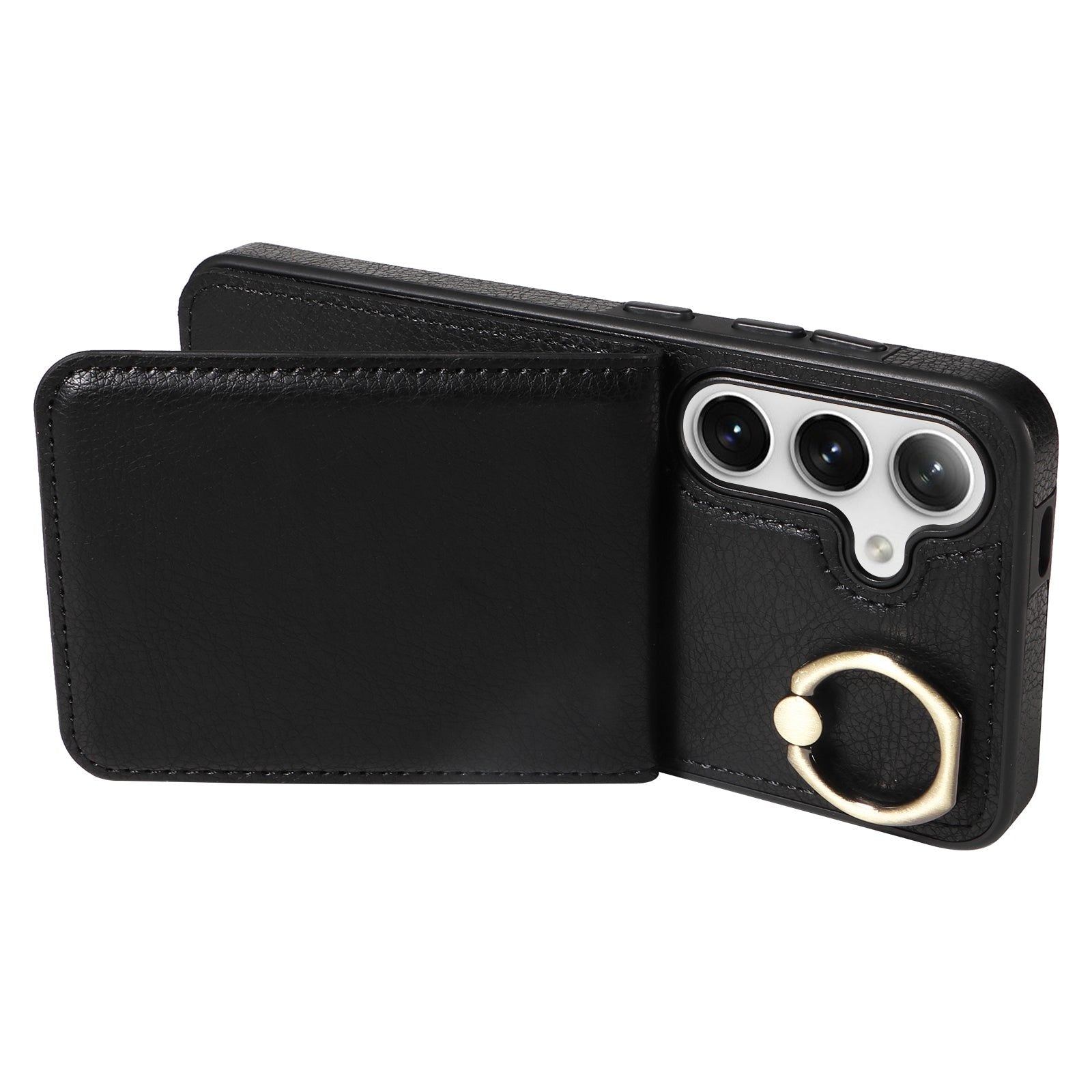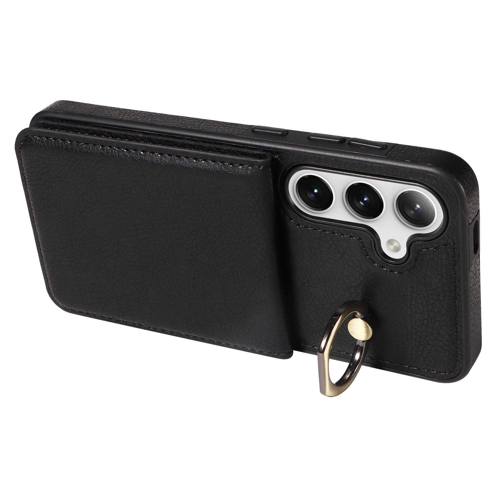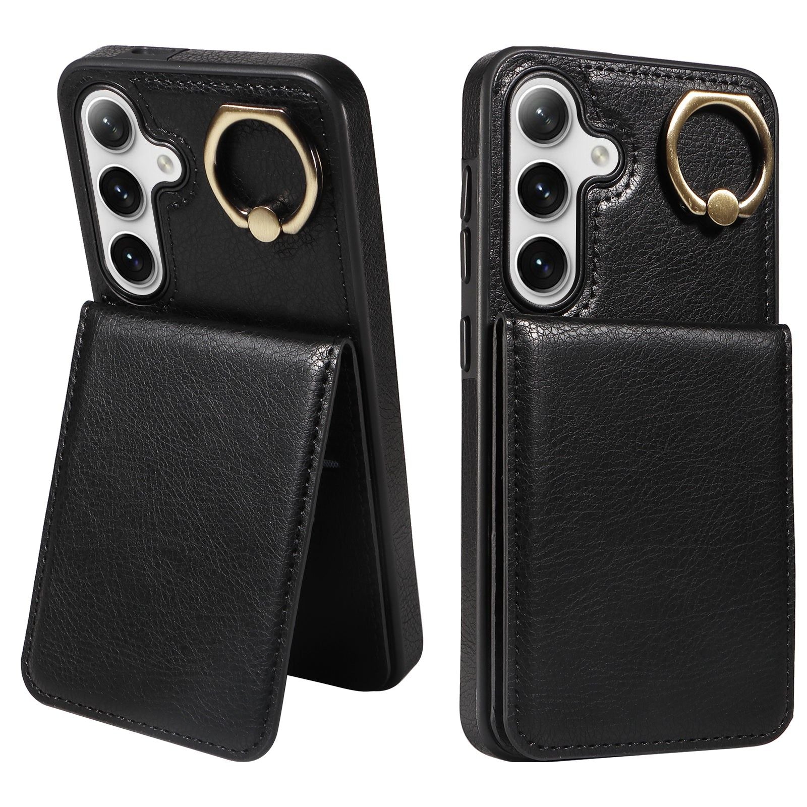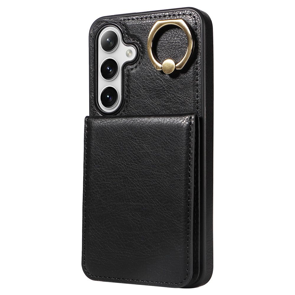 004 For Samsung Galaxy S24 Case Magnetic PU Leather+TPU Litchi Texture Phone Shell with Ring Holder - Black - UNIQKART