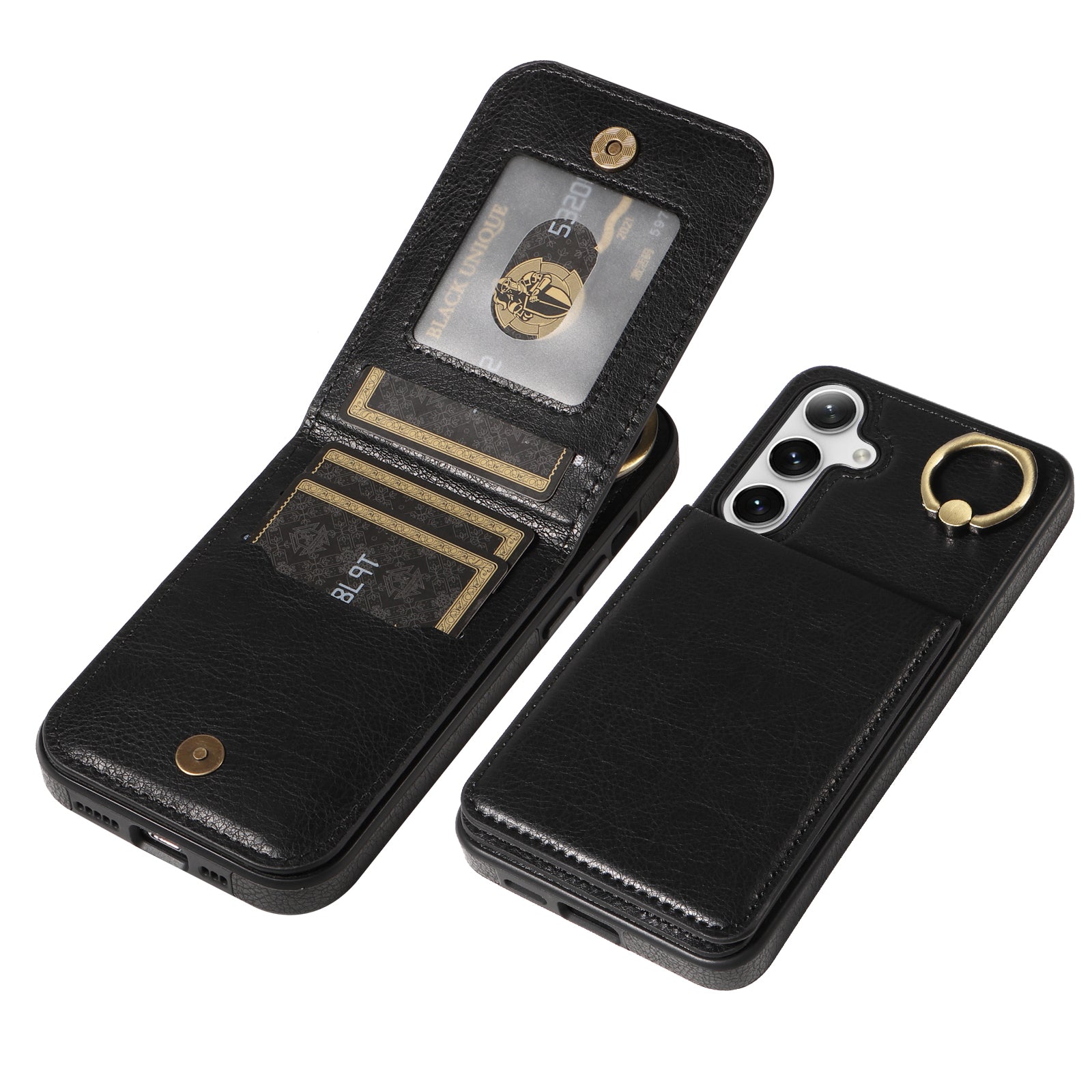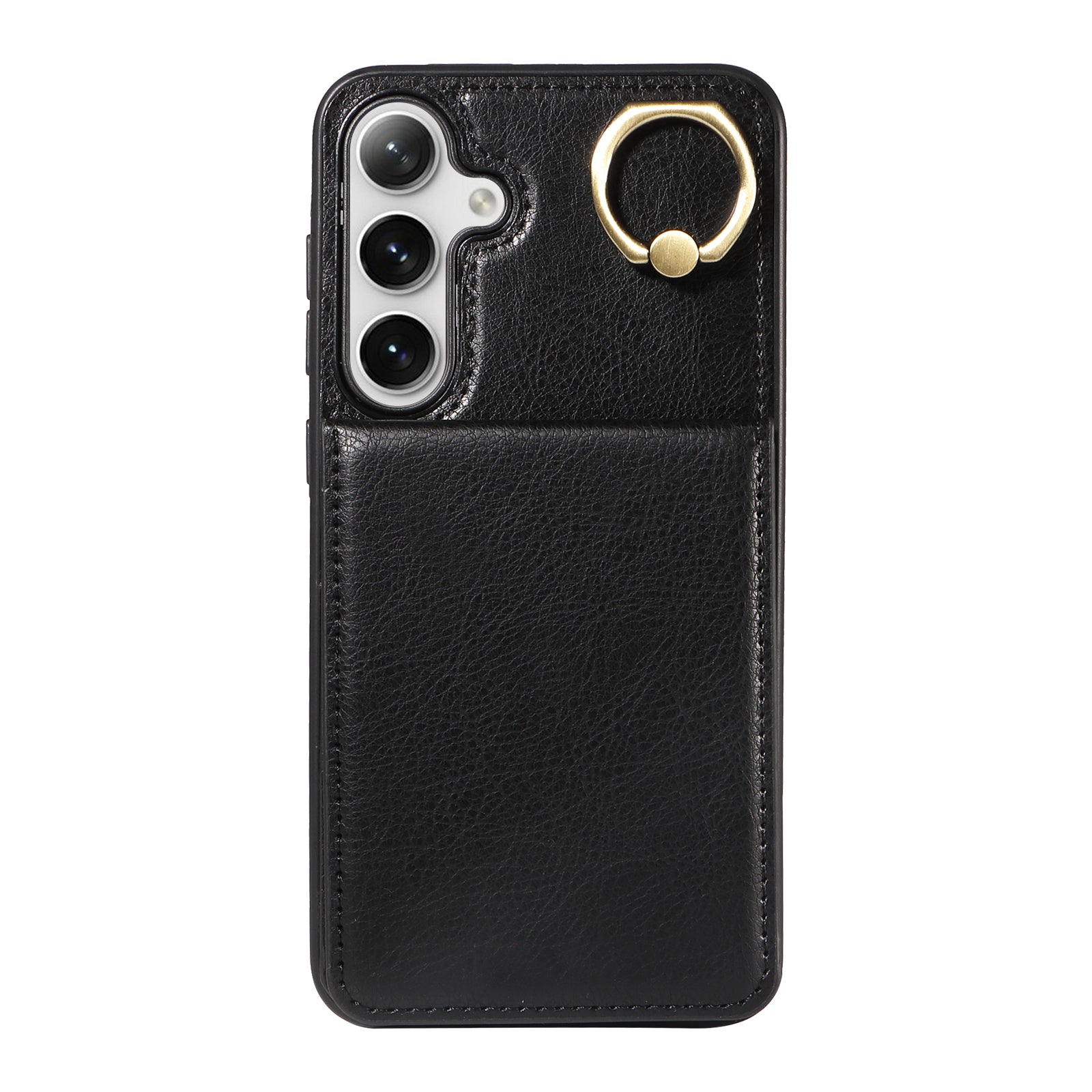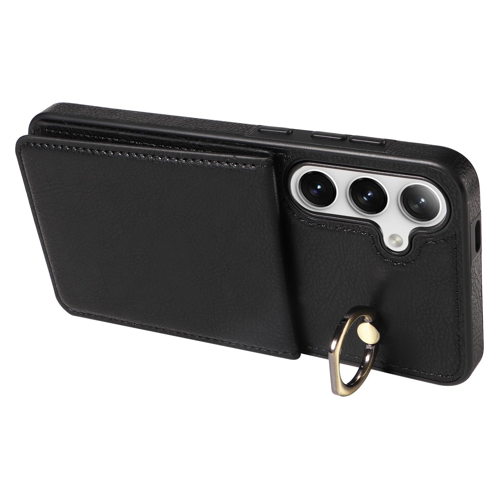 004 PU Leather+TPU Cover for Samsung Galaxy S24+ Case Vertical Flip Litchi Texture Phone Cover - Black