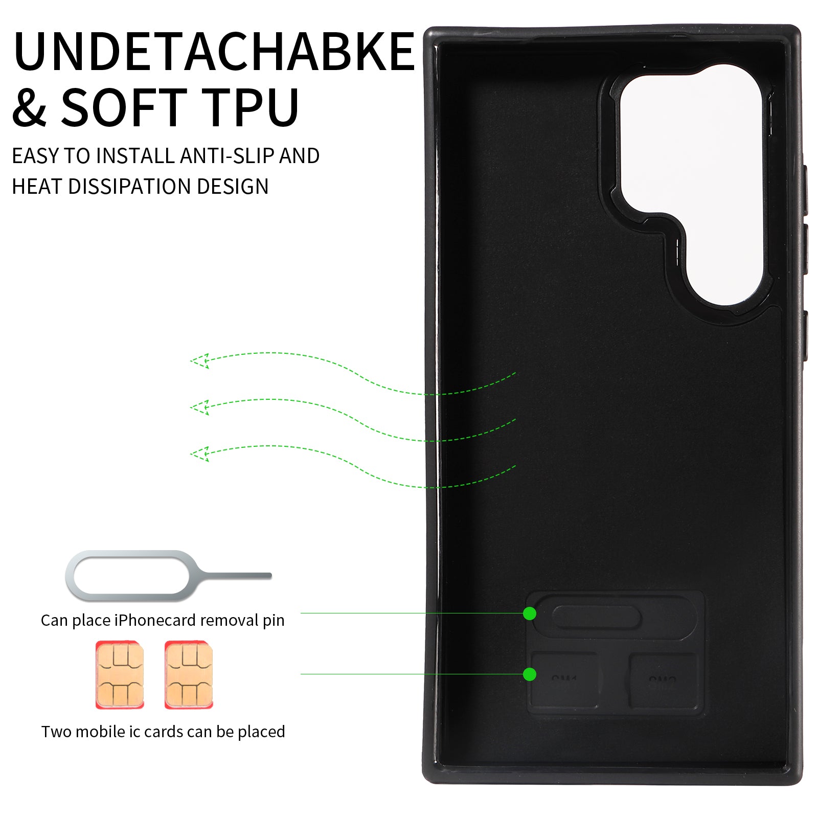 - Built-in slot for convenient storage of two SIM cards and ejector pin (not included)
