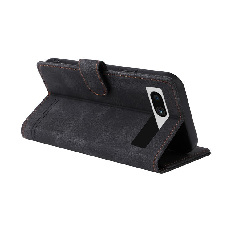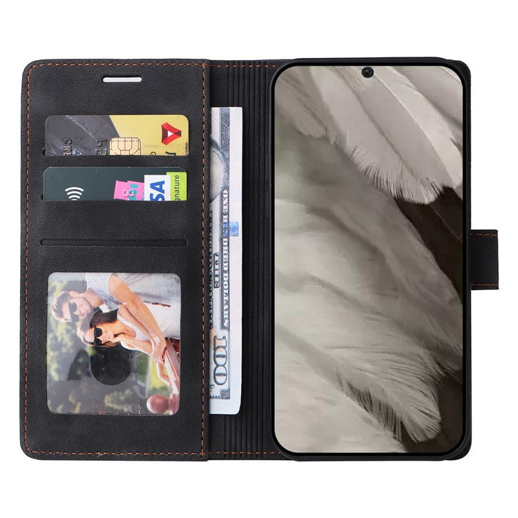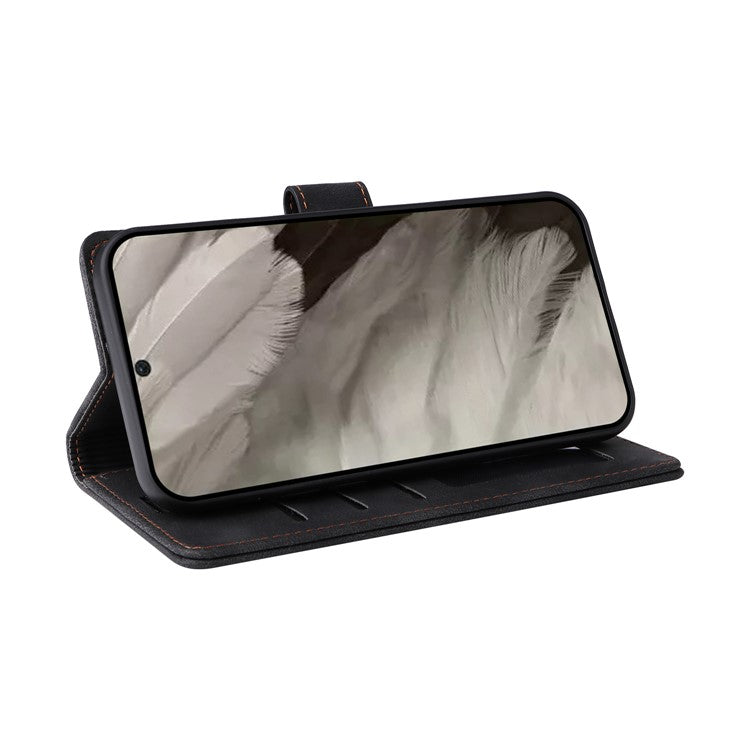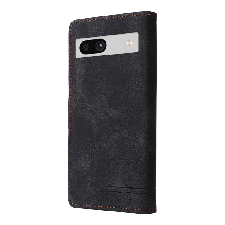 007 Series Wallet Leather Case for Google Pixel 7a , Skin-touch Feeling Flip Folio Stand Phone Cover - Black