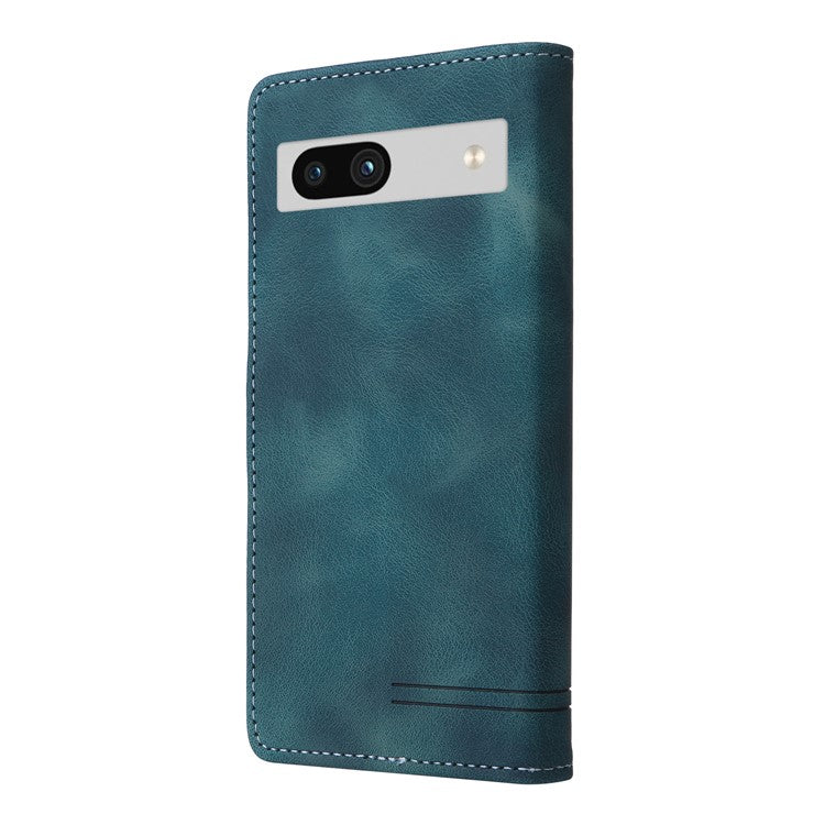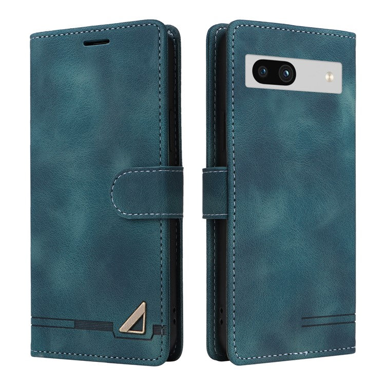 007 Series Wallet Leather Case for Google Pixel 7a , Skin-touch Feeling Flip Folio Stand Phone Cover - Green