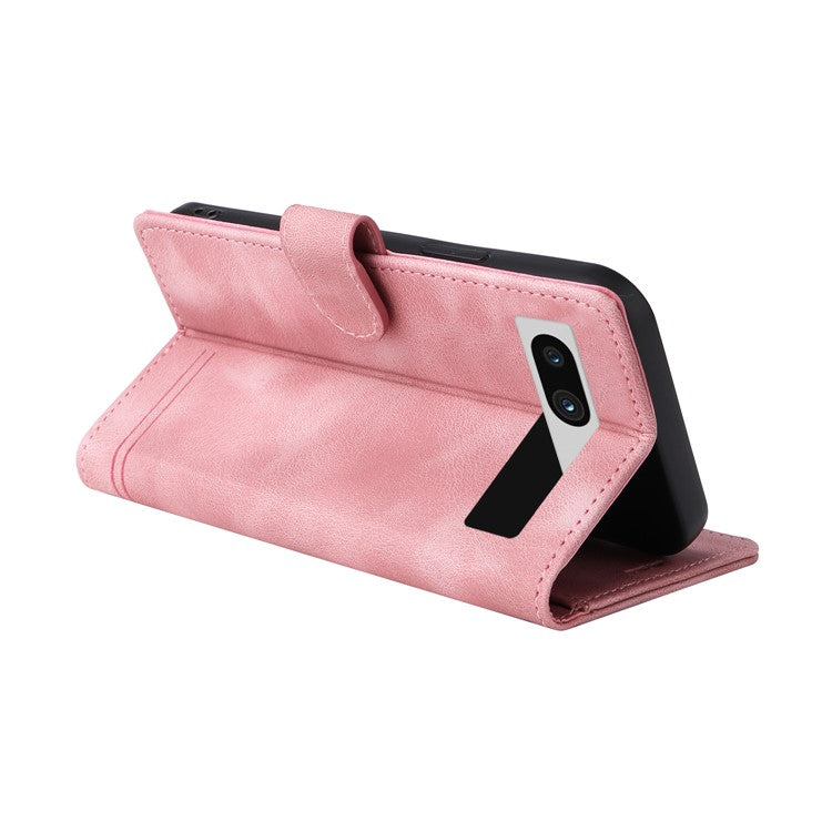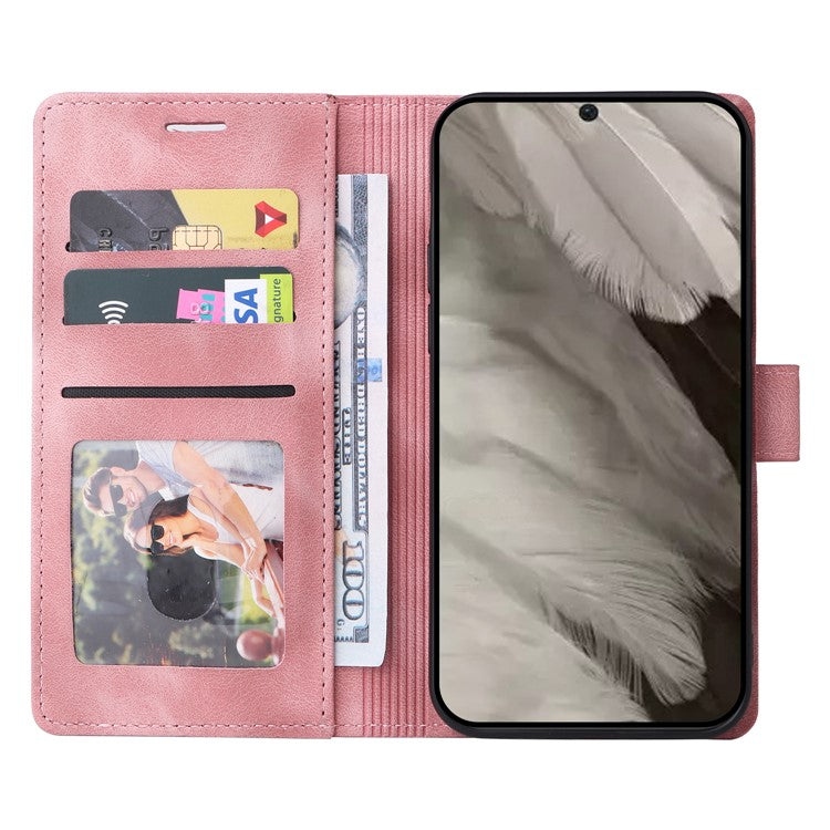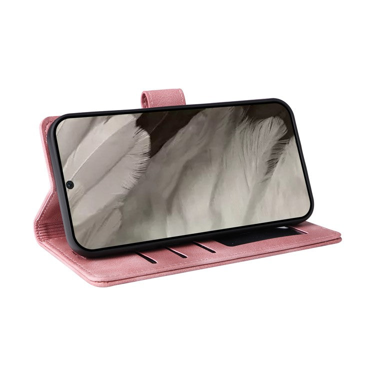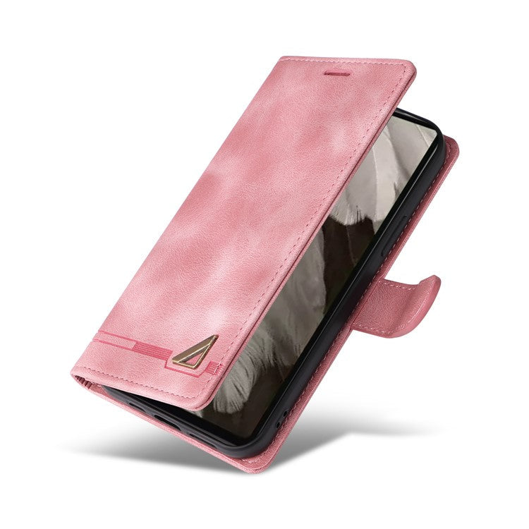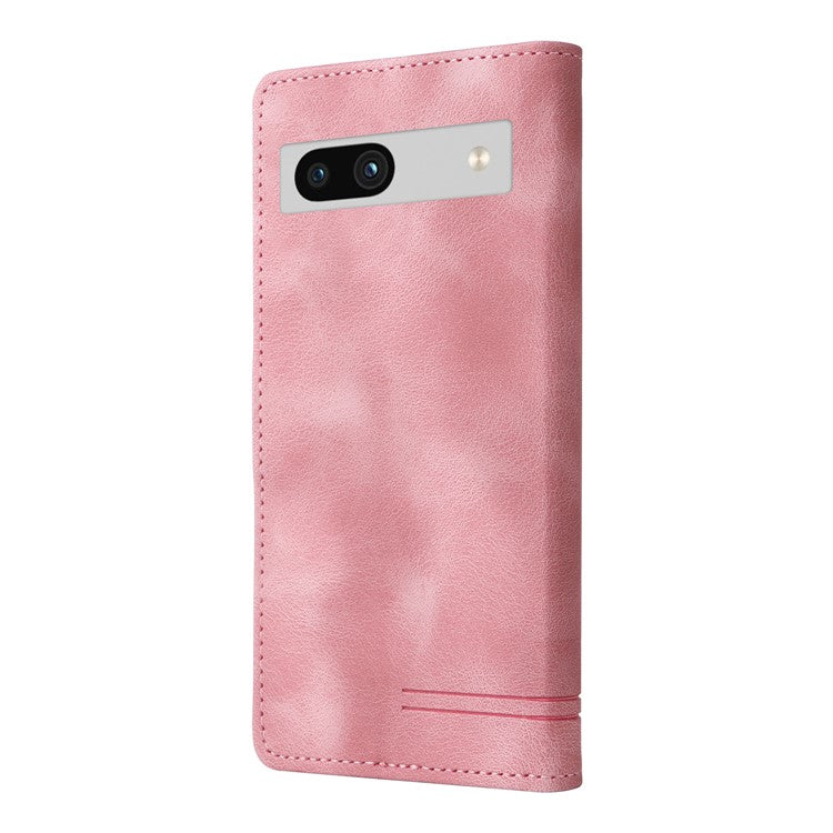 007 Series Wallet Leather Case for Google Pixel 7a , Skin-touch Feeling Flip Folio Stand Phone Cover - Pink