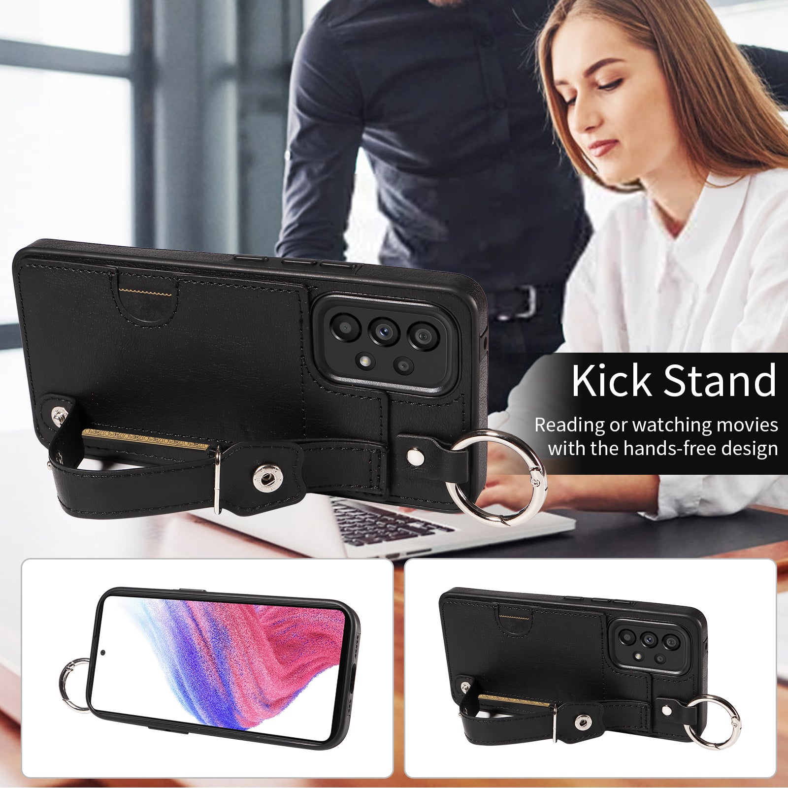 - The wristband can be used as a kickstand for hands-free watching