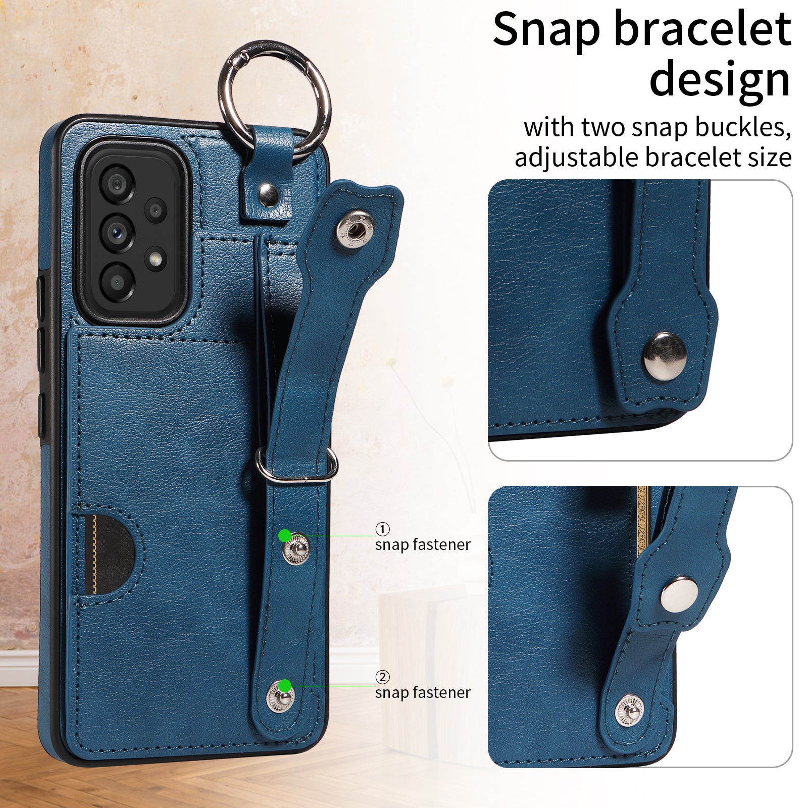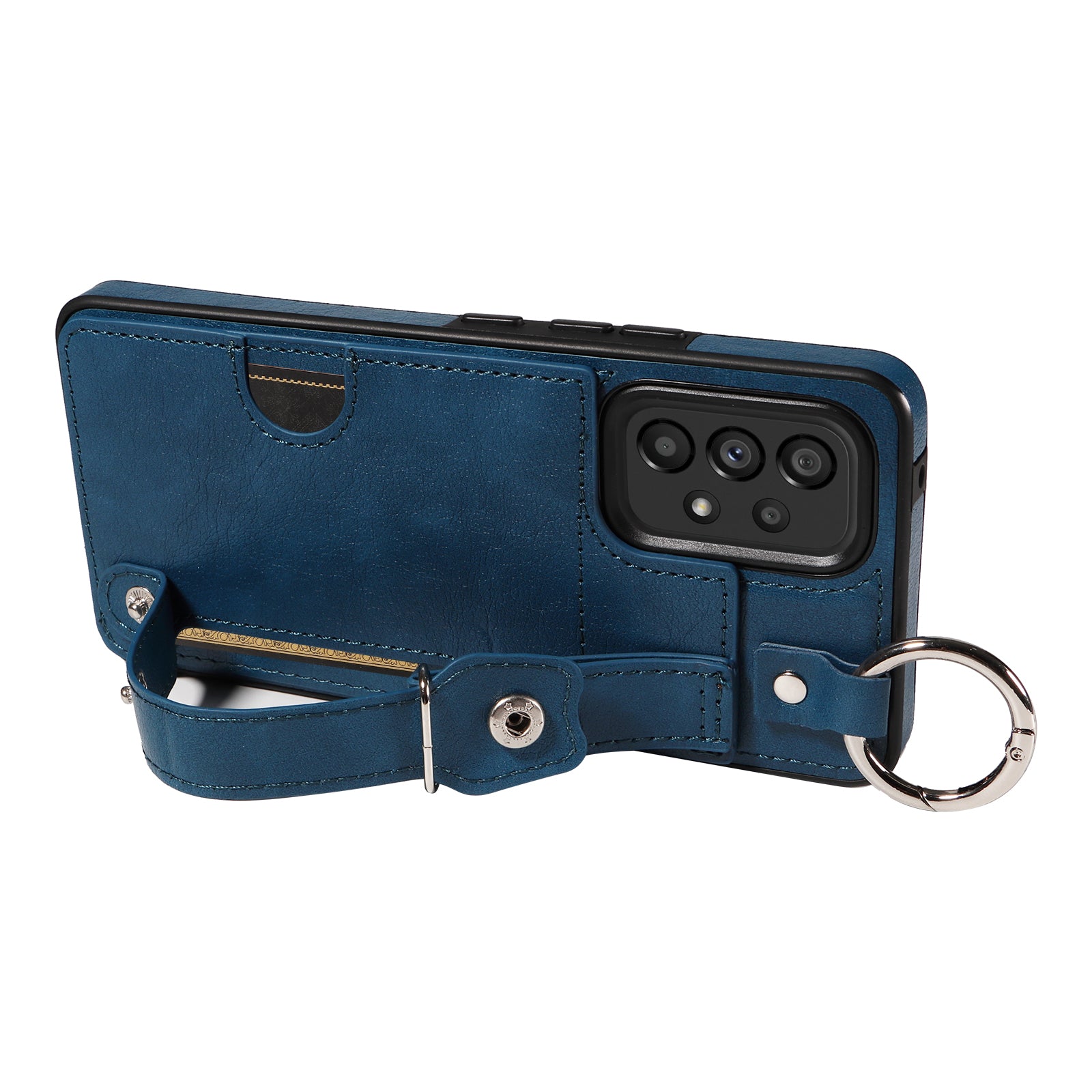 008 For Samsung Galaxy A53 5G Kickstand Case Calf Texture Leather+TPU Phone Case - Blue