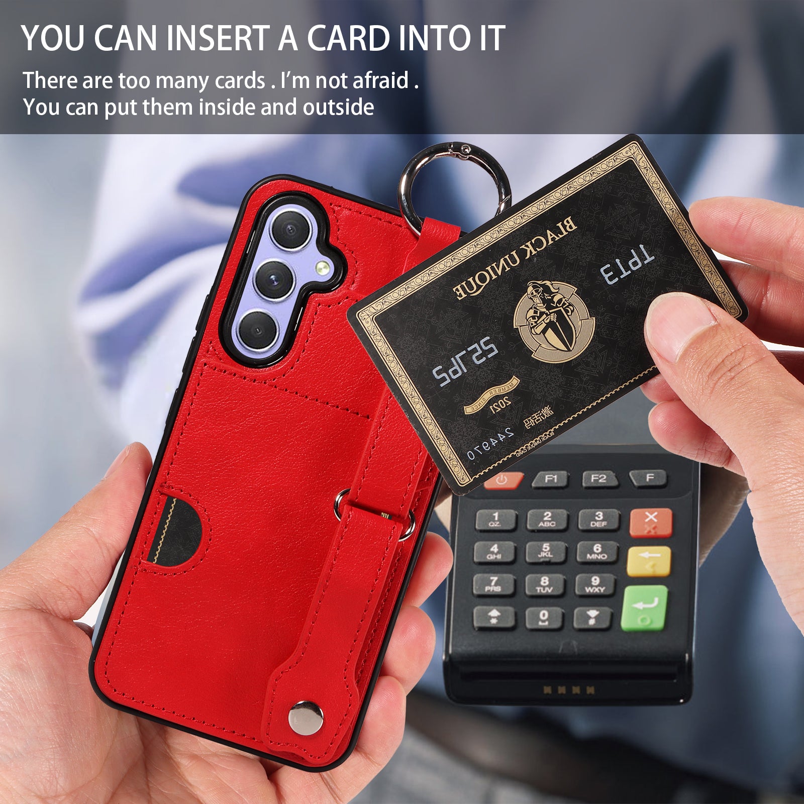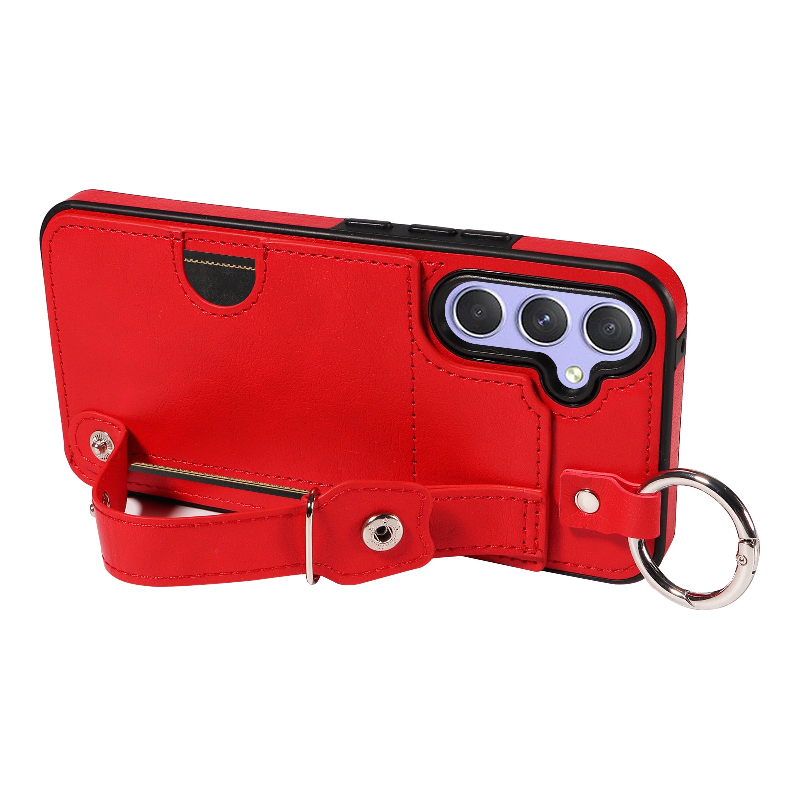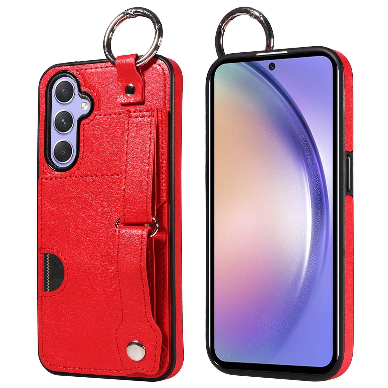 008 For Samsung Galaxy A54 5G Phone Case with Wrist Strap Kickstand Leather+TPU Shell - Red