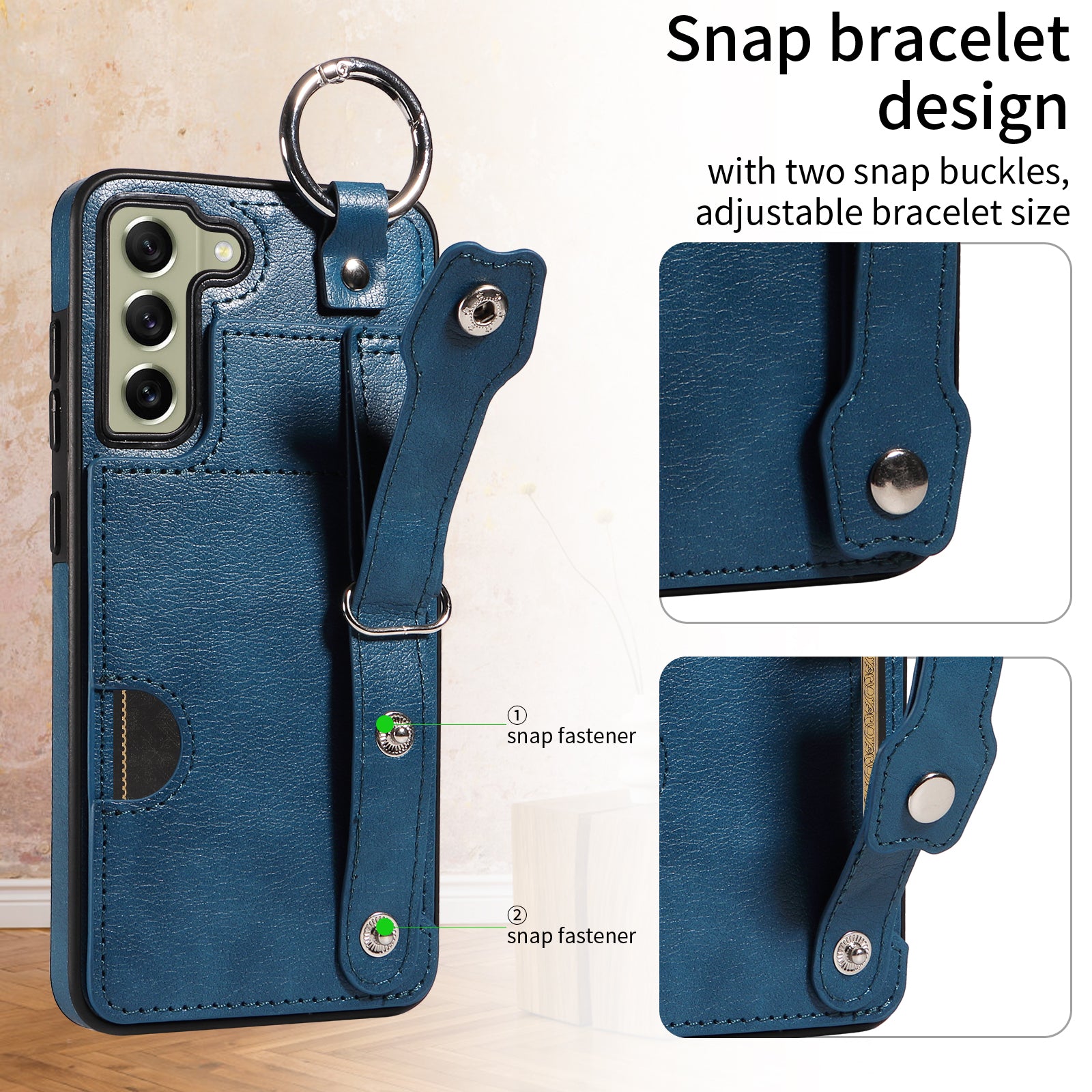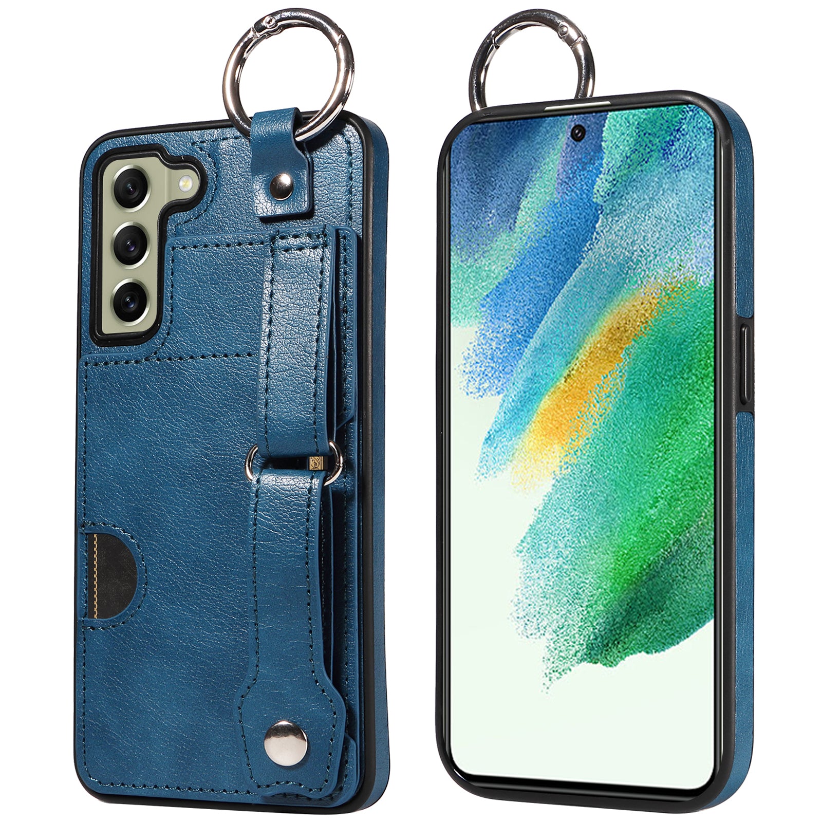 008 For Samsung Galaxy S21 FE 5G Case Anti-Scratch Leather TPU Phone Cover with Kickstand - Blue