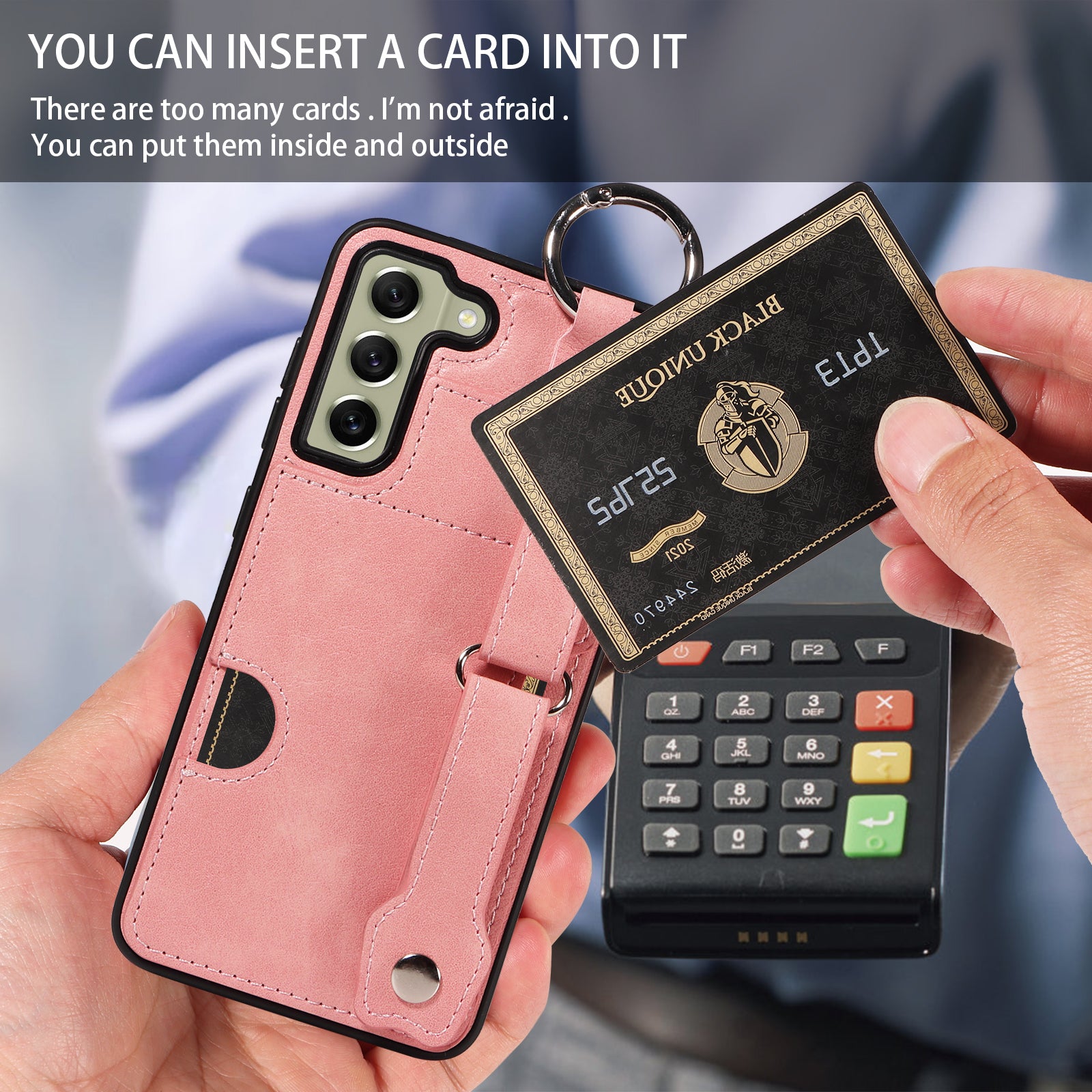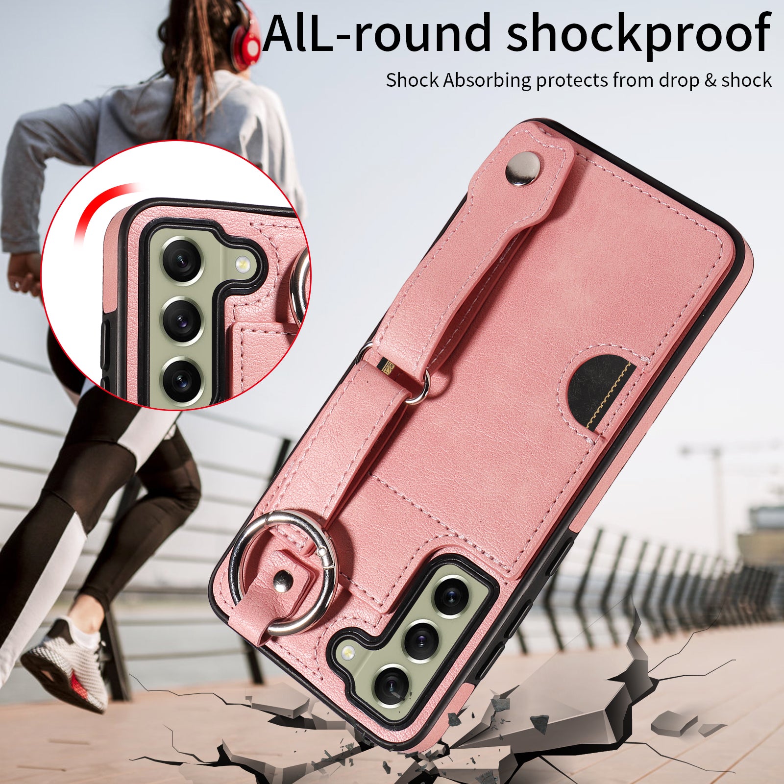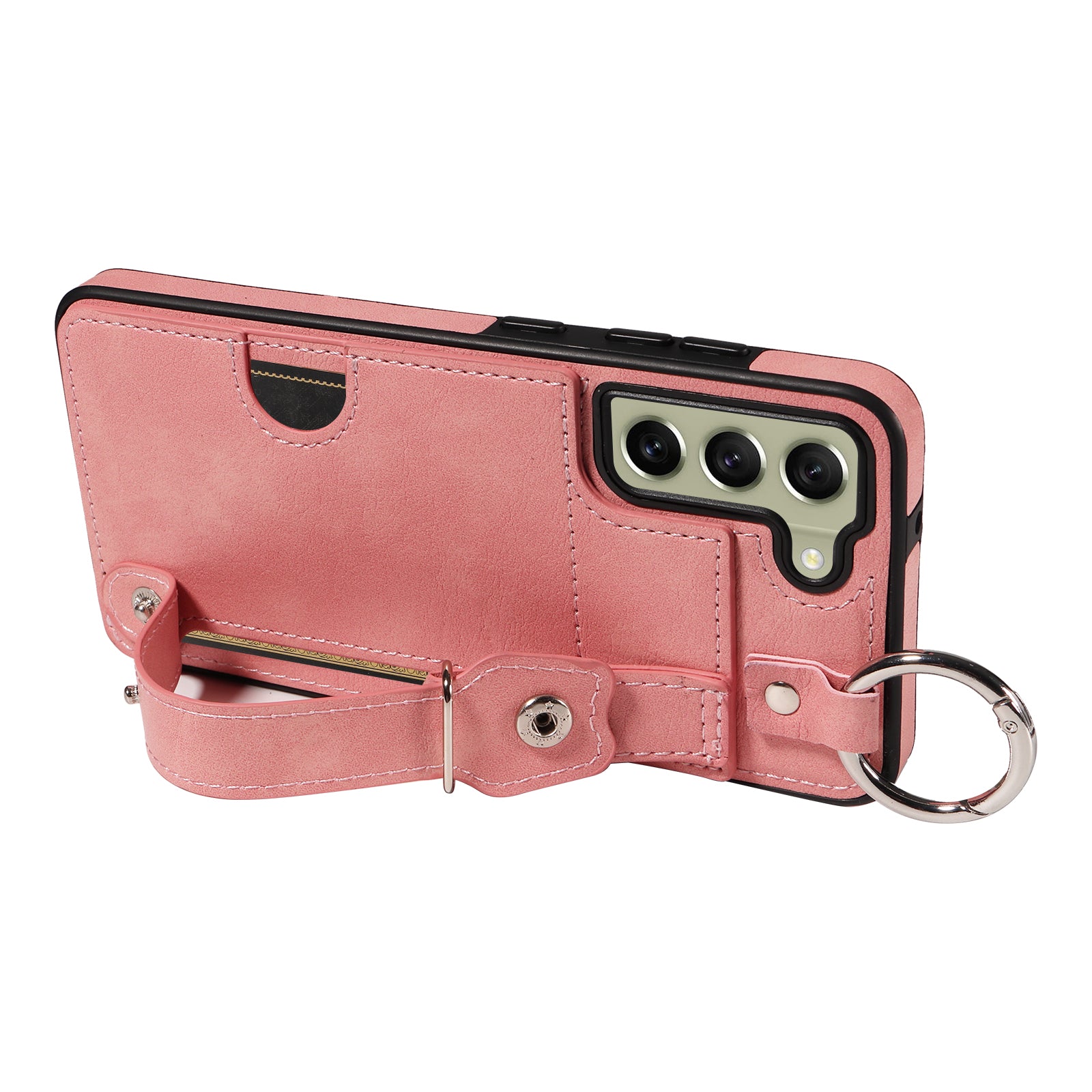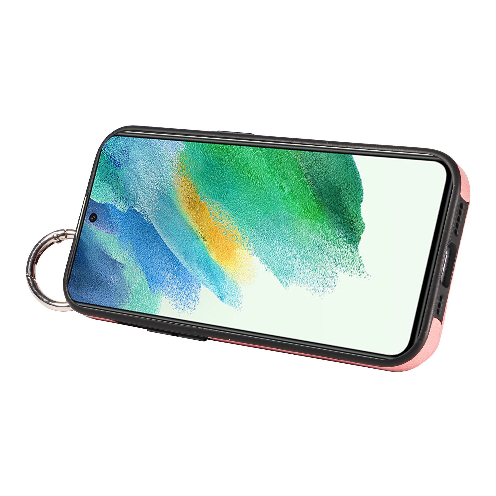 008 For Samsung Galaxy S21 FE 5G Case Anti-Scratch Leather TPU Phone Cover with Kickstand - Pink