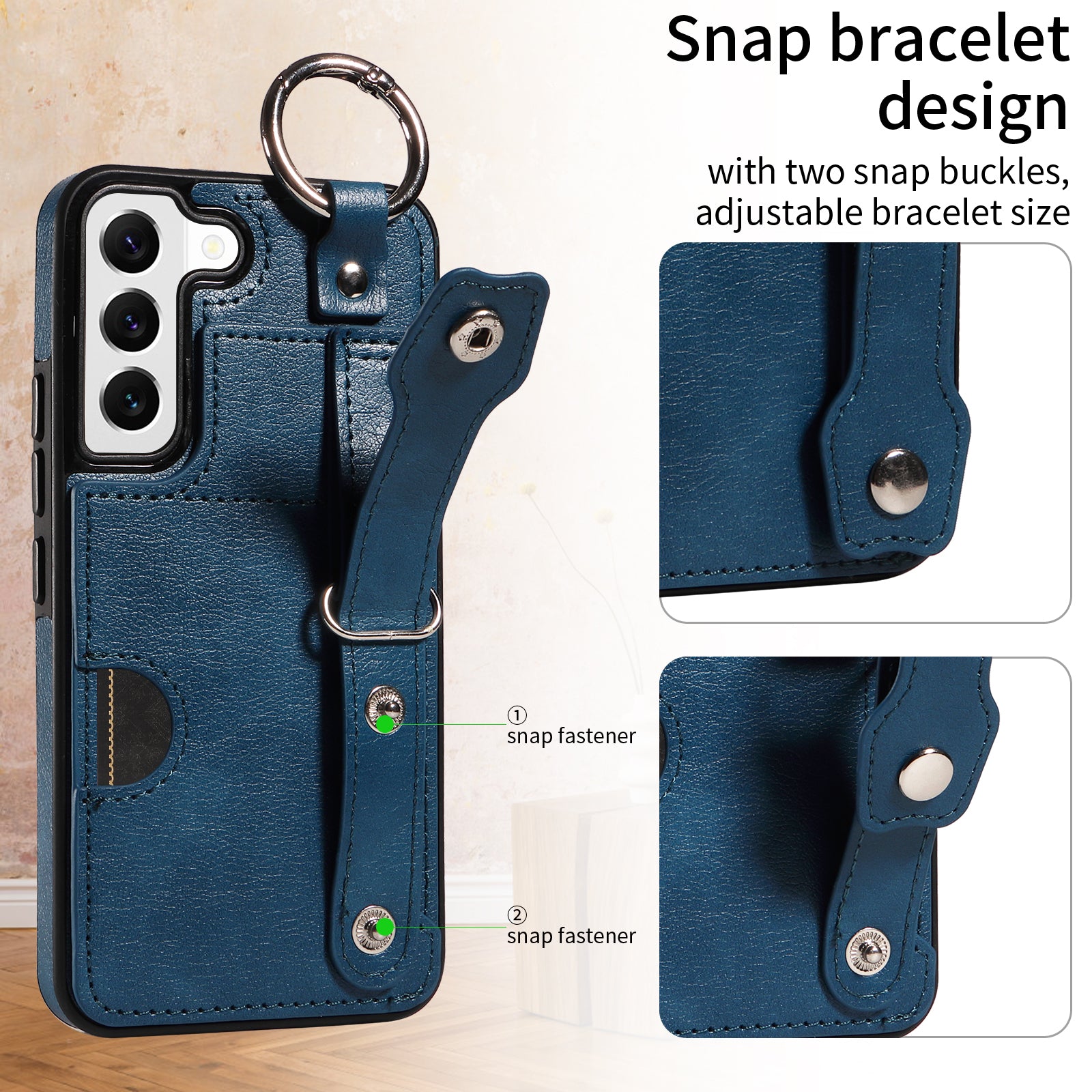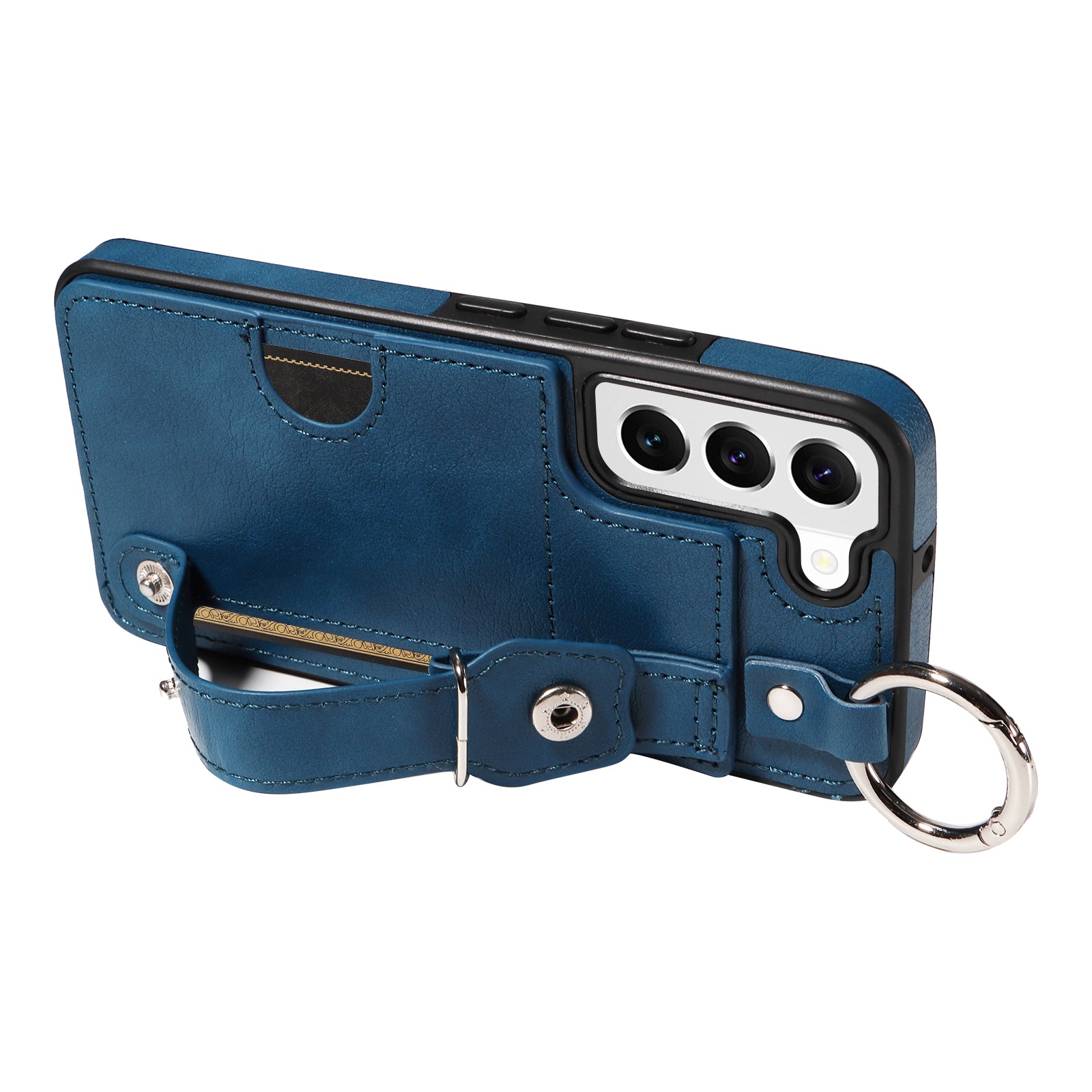 008 For Samsung Galaxy S22 5G Case Card Holder Leather Coated TPU Phone Kickstand Cover - Blue