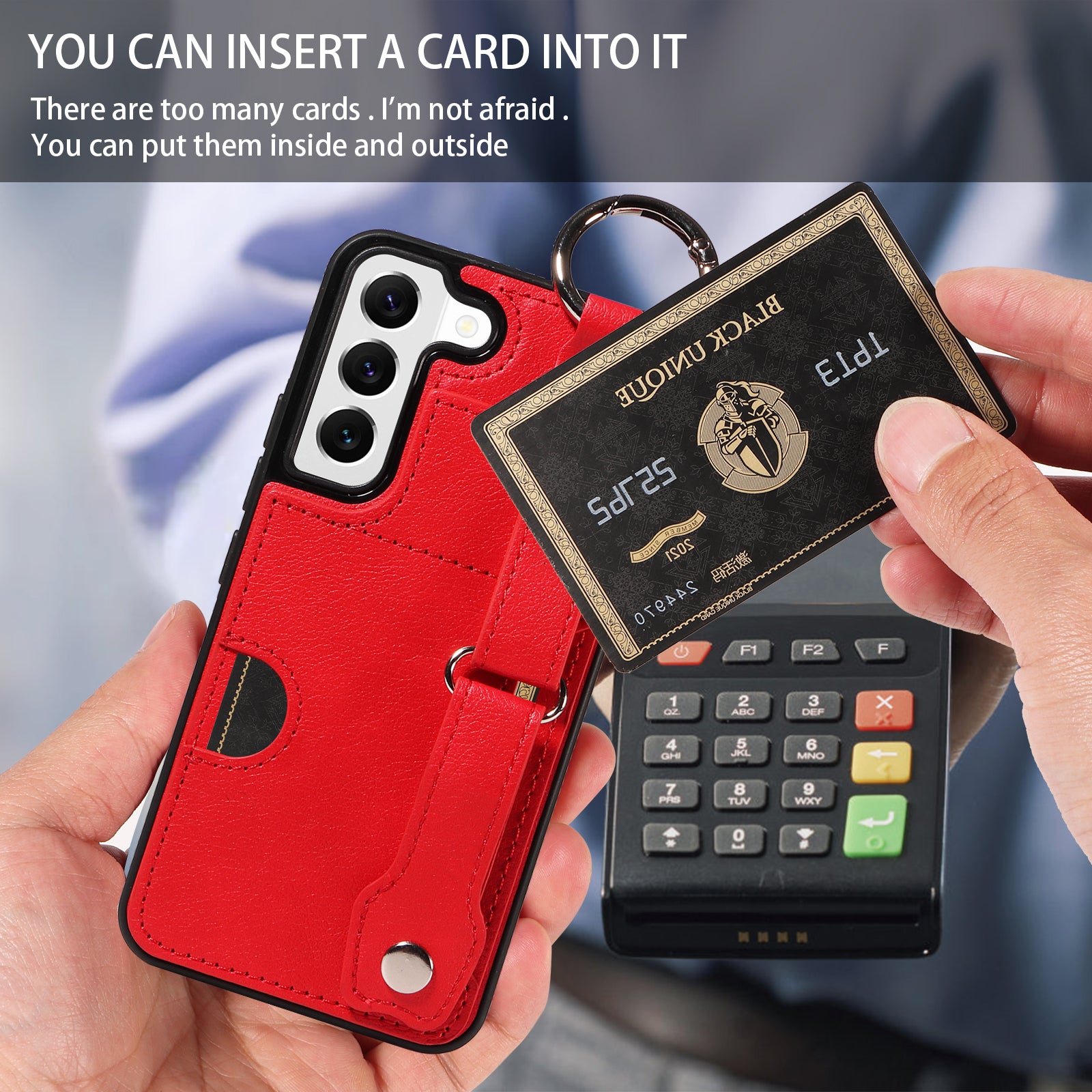 008 For Samsung Galaxy S22 5G Case Card Holder Leather Coated TPU Phone Kickstand Cover - Red