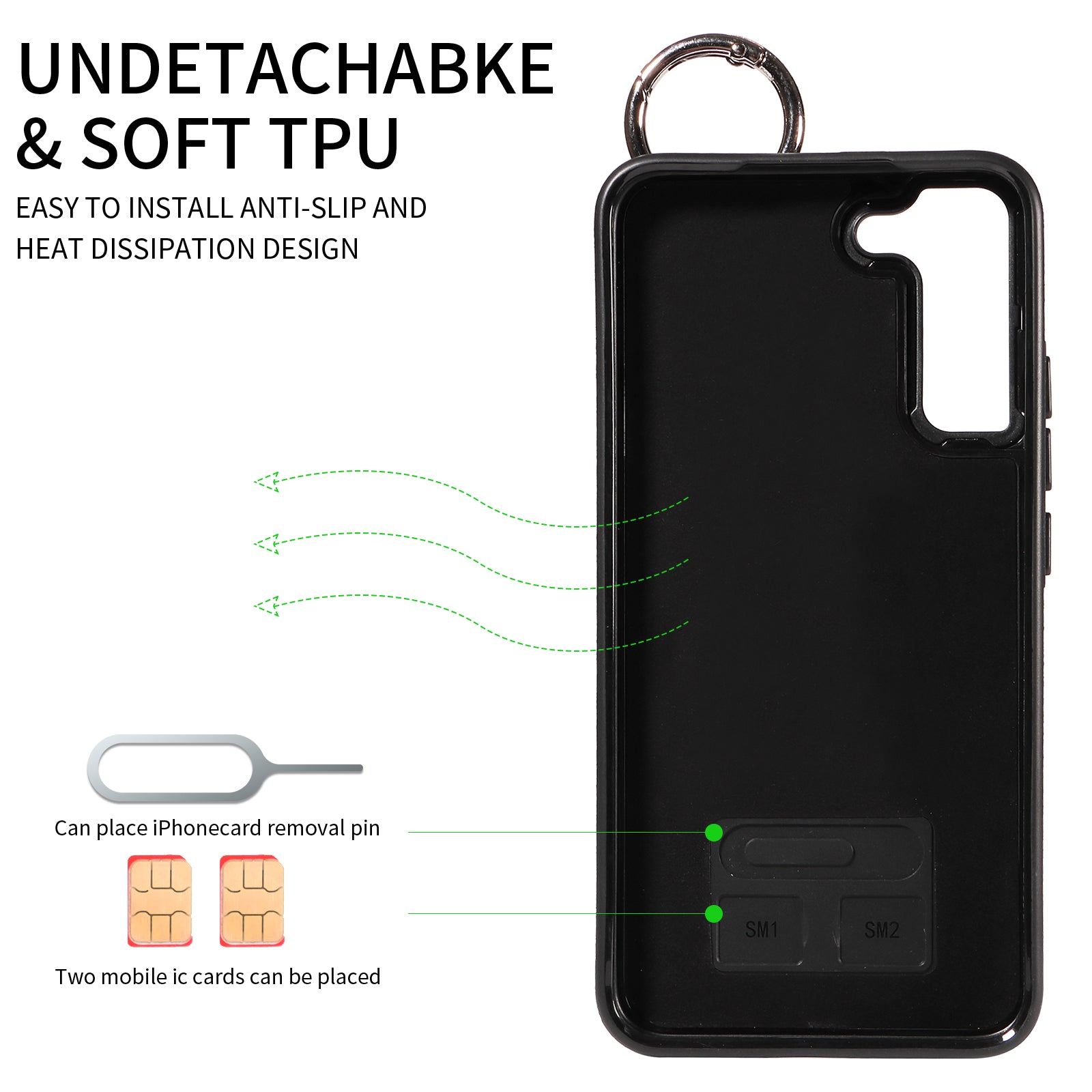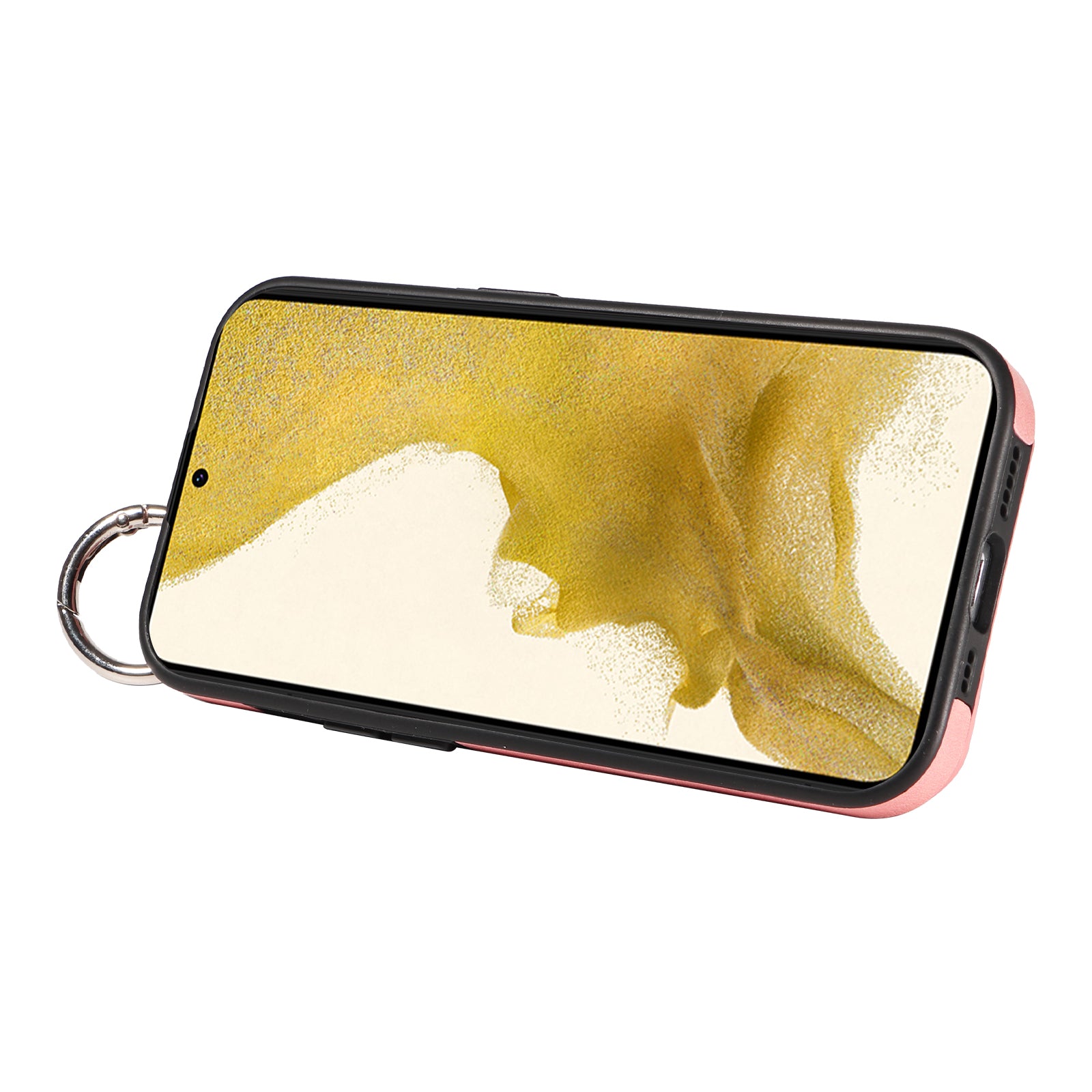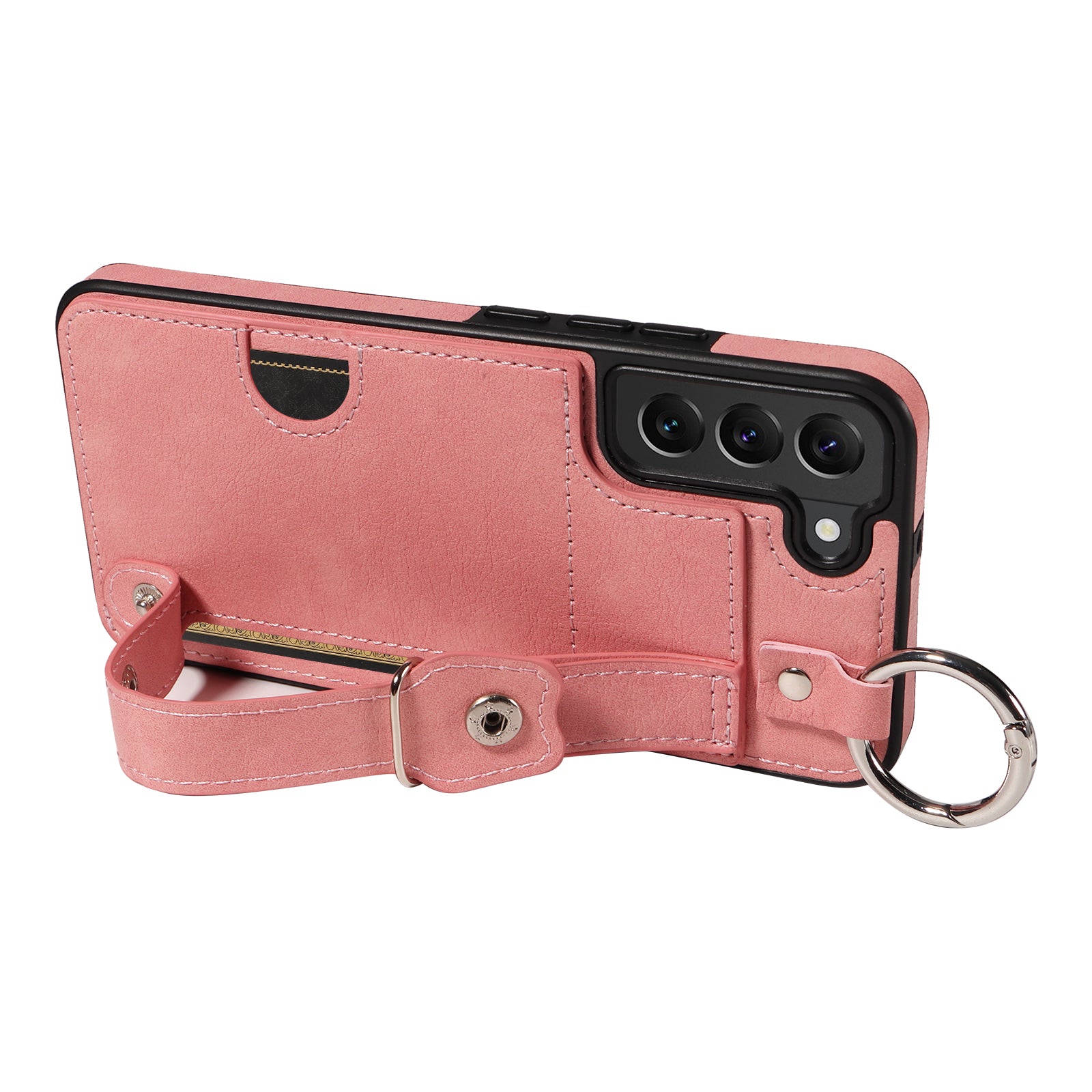 008 For Samsung Galaxy S22+ 5G Case Non-Slip Kickstand Grip Leather+TPU Phone Cover with Card Holder - Pink