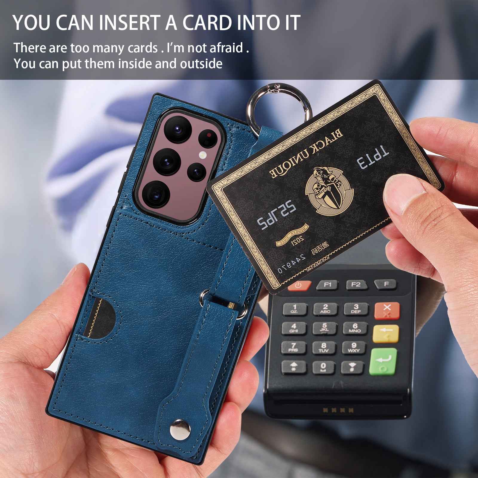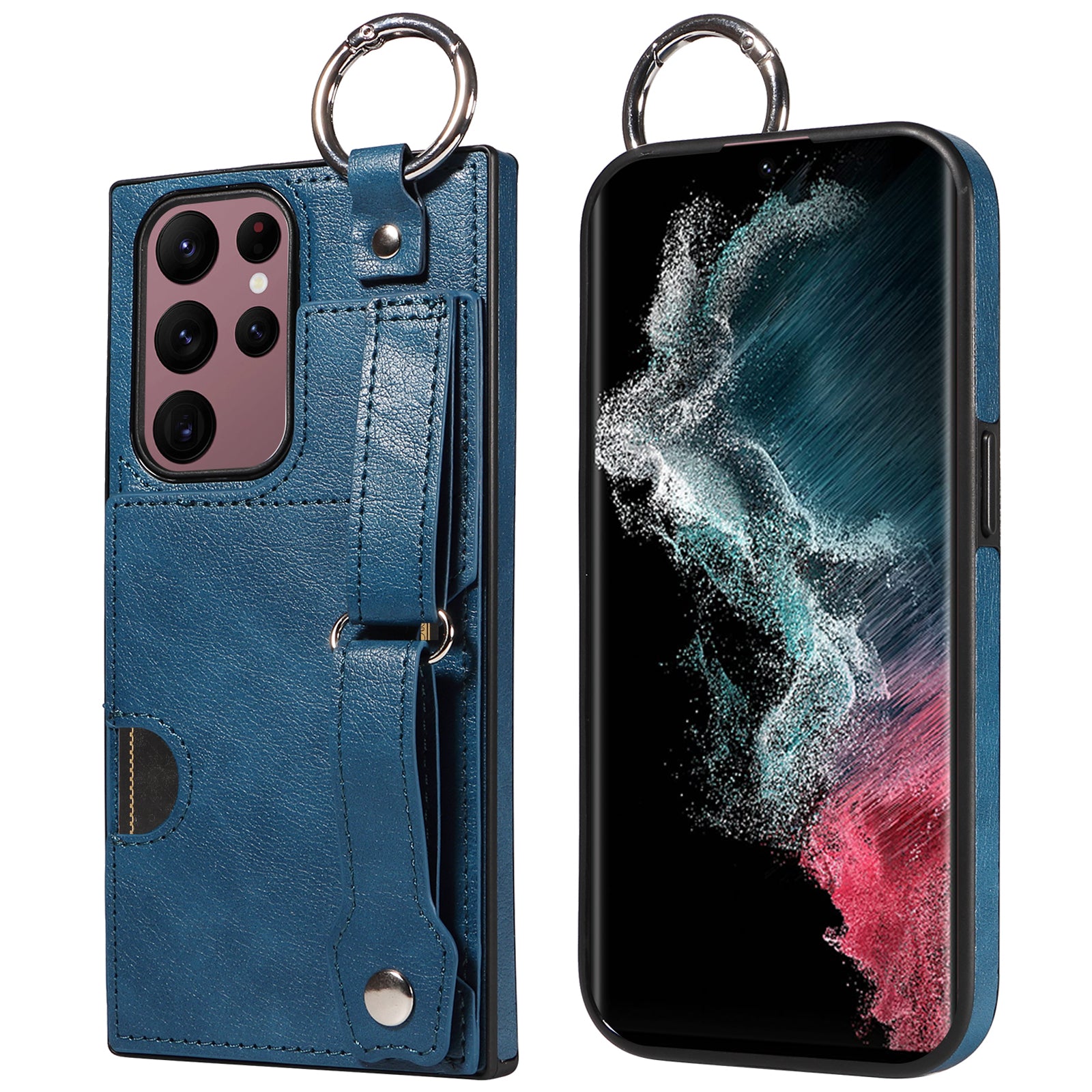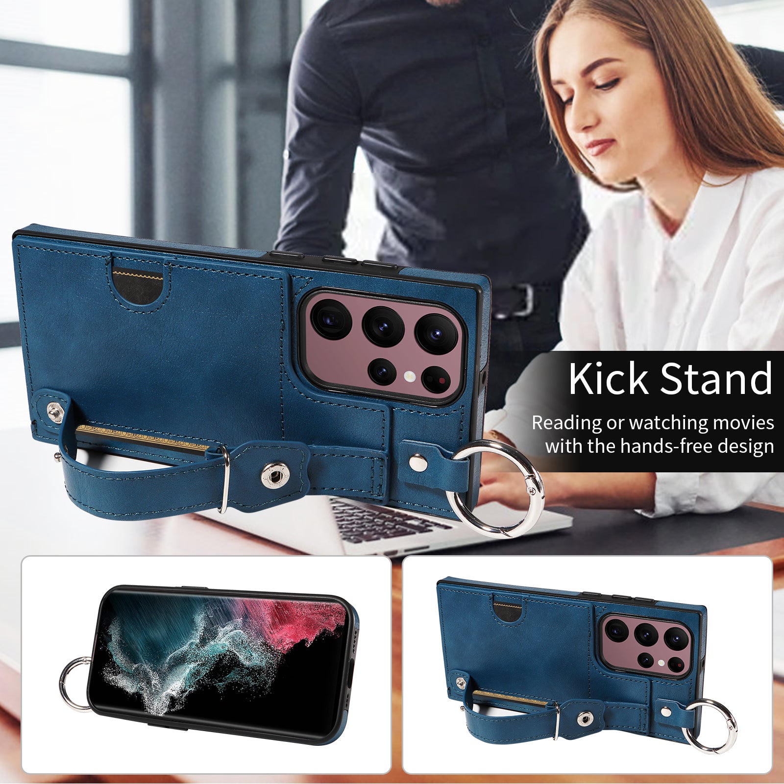 008 For Samsung Galaxy S22 Ultra 5G Case Anti-dust Leather+TPU Kickstand Phone Guard Cover - Blue