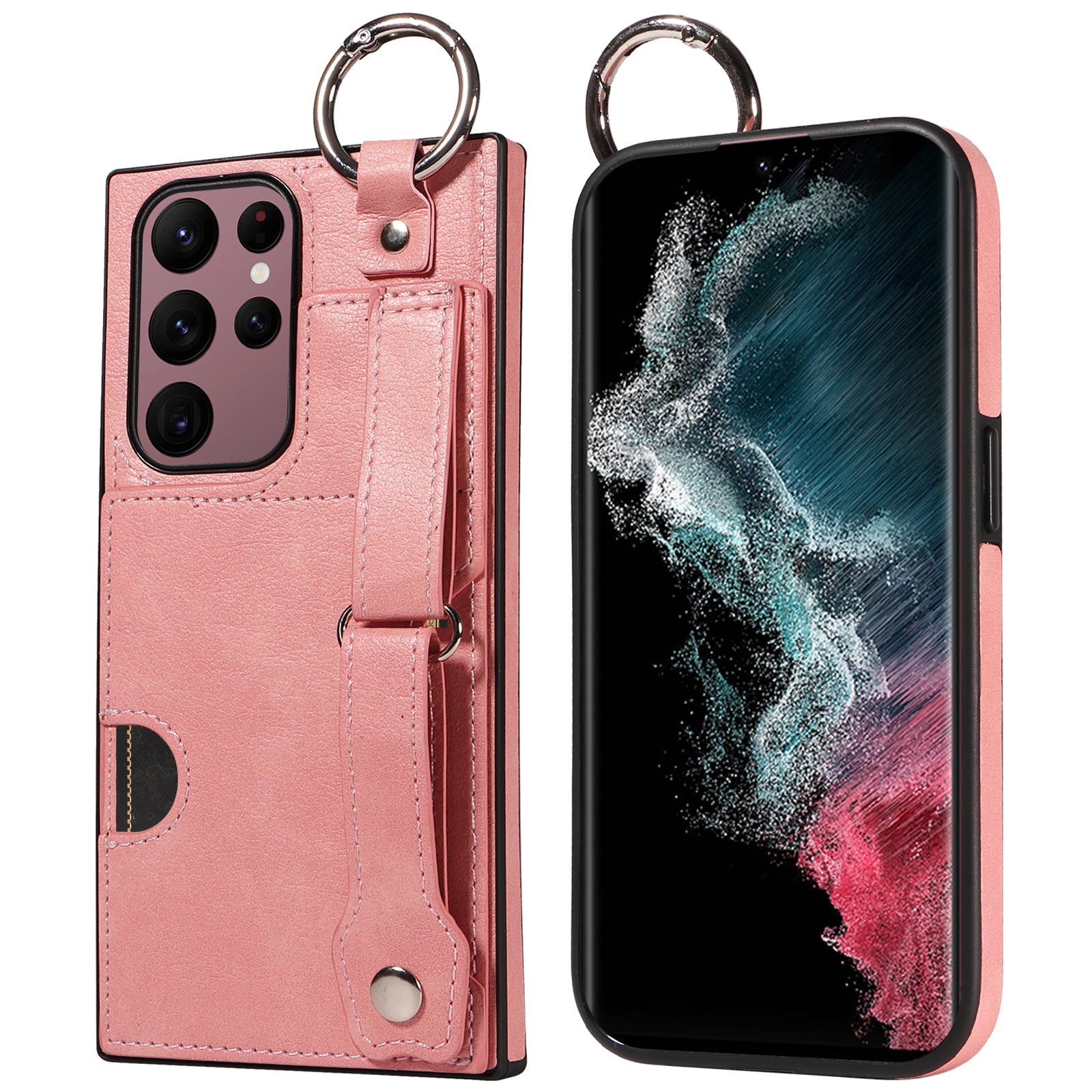 008 For Samsung Galaxy S22 Ultra 5G Case Anti-dust Leather+TPU Kickstand Phone Guard Cover - Pink