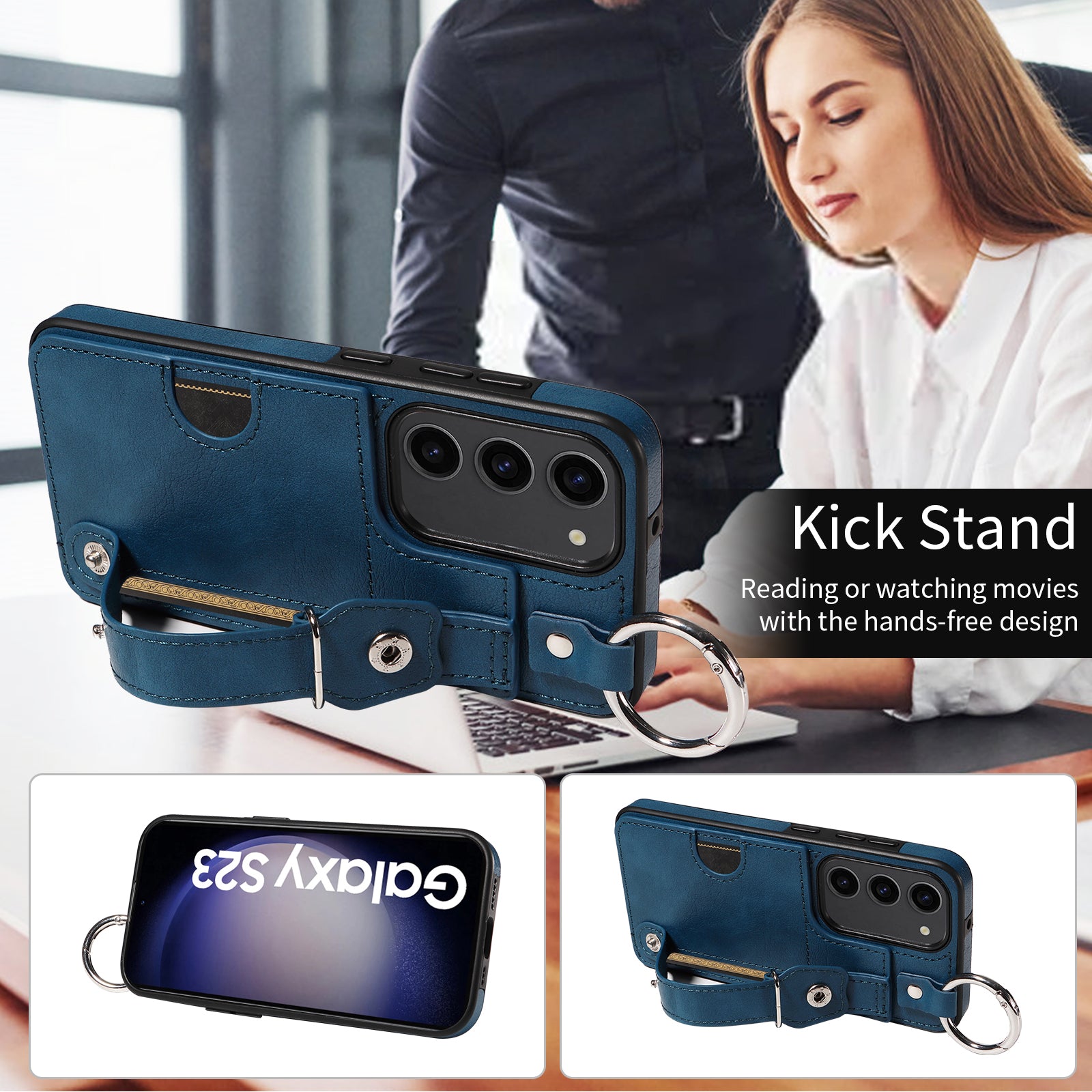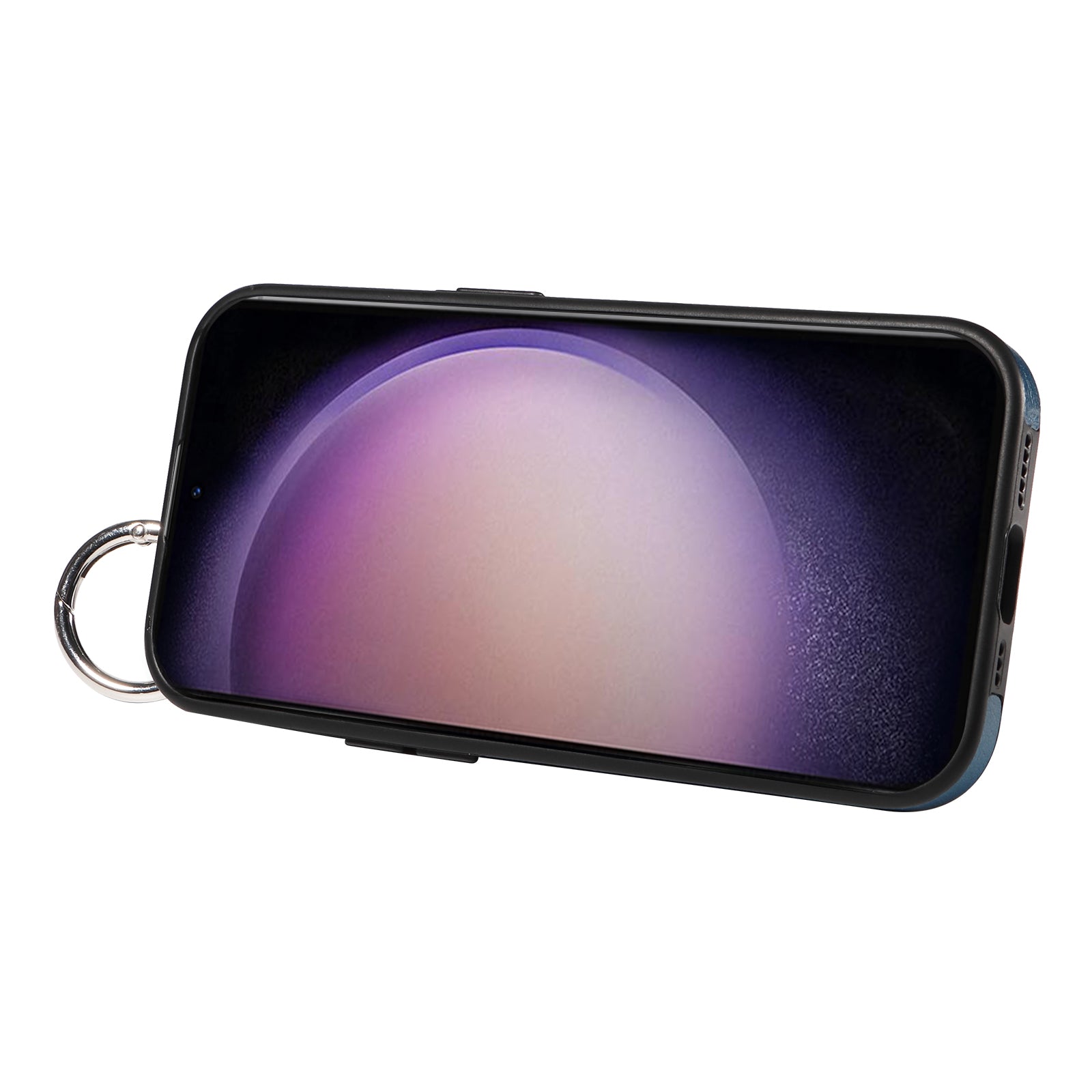 008 For Samsung Galaxy S23 Case Leather+TPU Protective Phone Cover with Ring Buckle - Blue