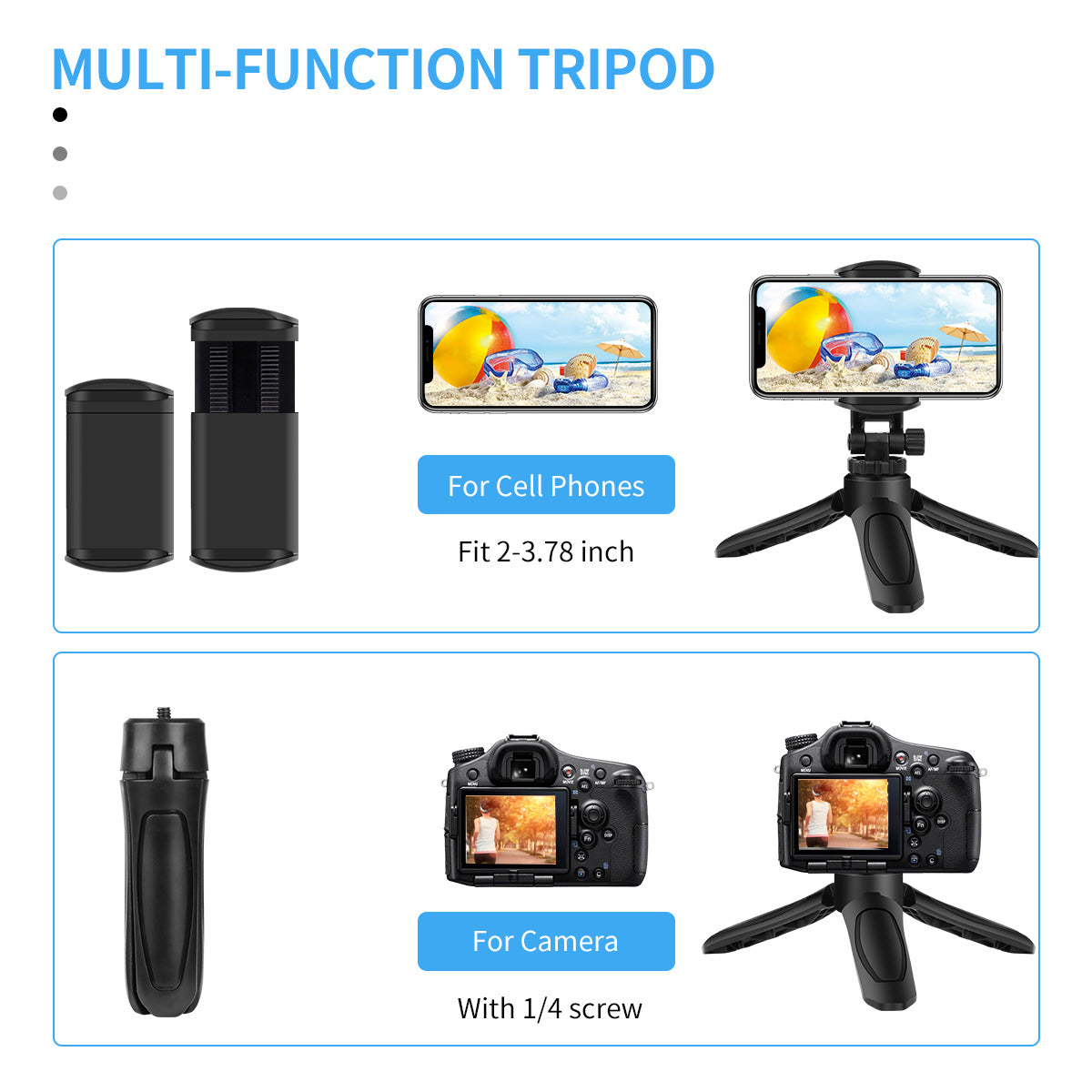 Multi-function rotating phone holder + tripod (detachable)-Multi-function phone holder, universal 360° rotating phone holder for tripod and selfie stick, suitable for various tripod supports, selfie sticks, base 1/4 universal standard interface, can be installed in selfie sticks On poles and brackets, you can easily record videos, selfies, live broadcasts, etc.