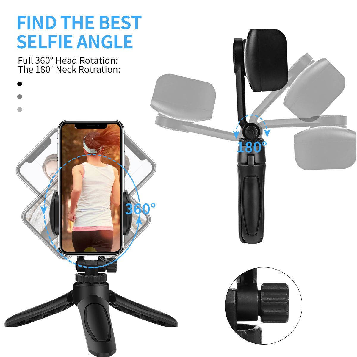 The angle can be adjusted in various directions to suit various postures and scenes. Can be rotated and adjusted 360 degrees, support horizontal shooting, vertical shooting, tilt shooting, free adjustment