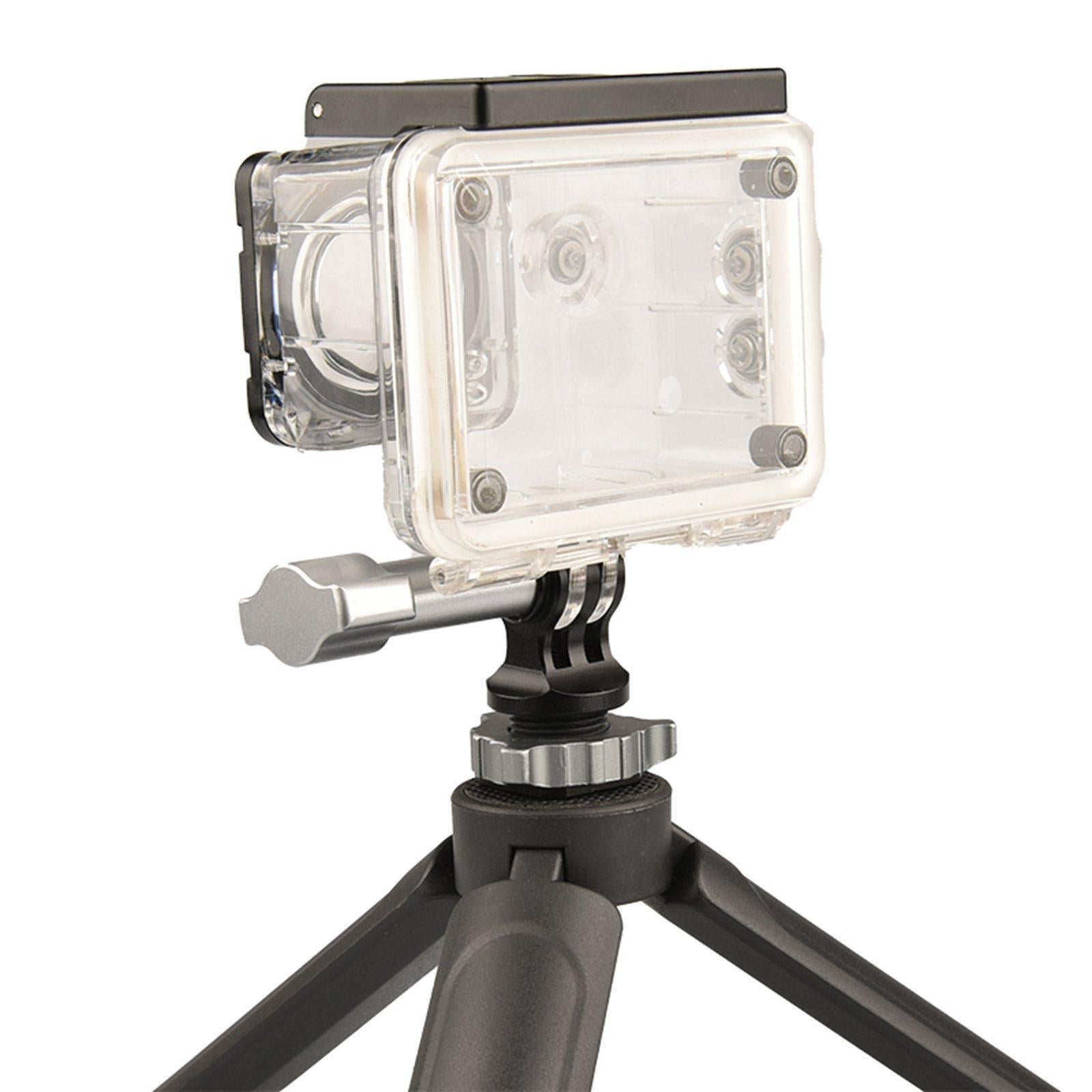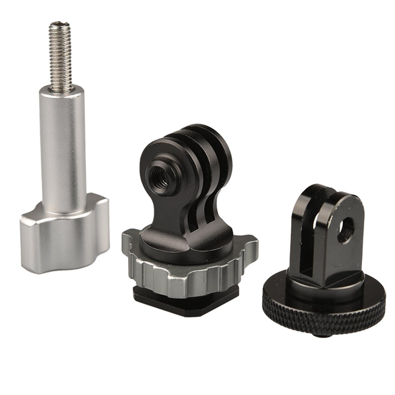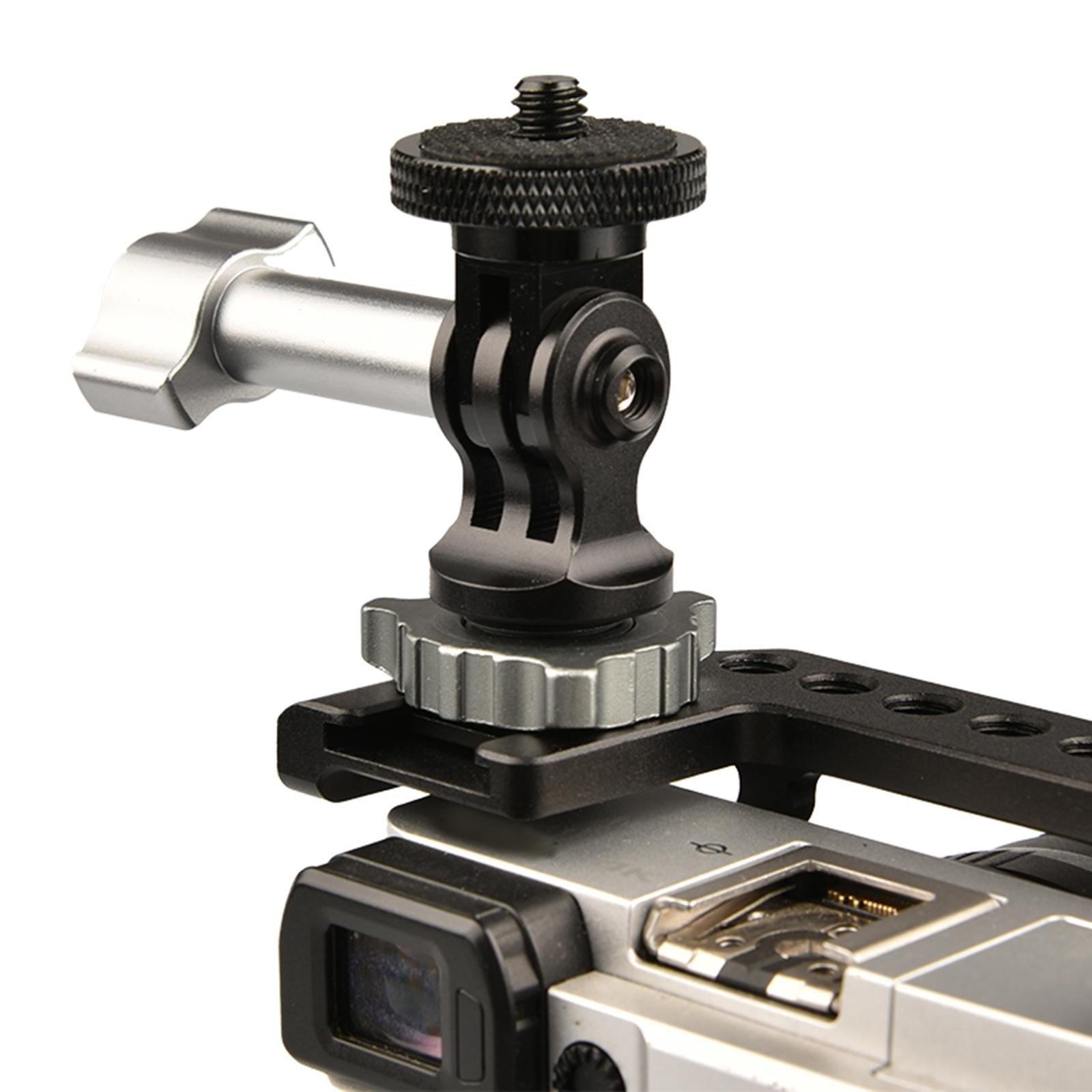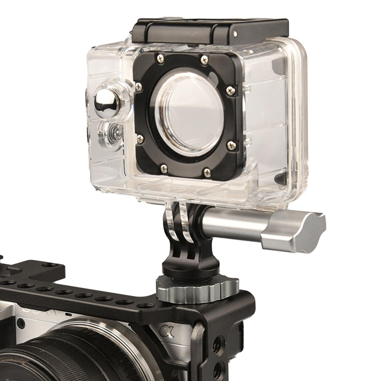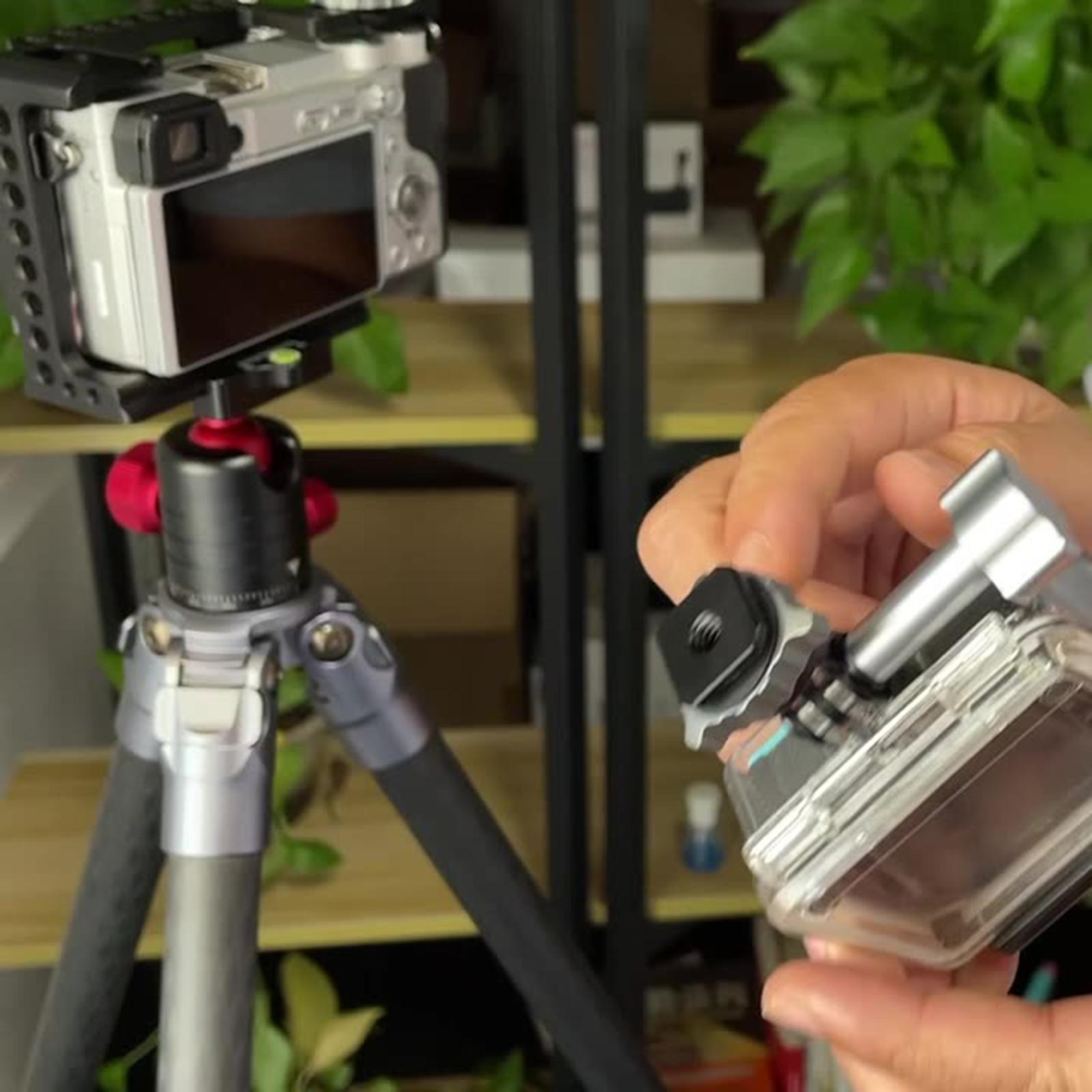 Convenient to attach action camera to tripod, selfie stick, rail slider and other devices with 1/4" screw mount or camera hot shoe or camera cage.