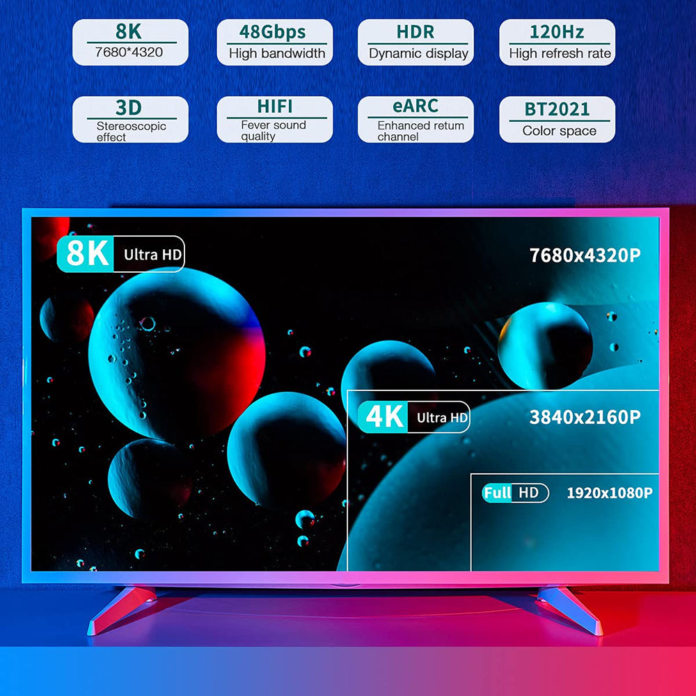 - 8KHDMI cable - HD multimedia interface 2.1 port expands bandwidth to 48 Gbps. Connect 8K/HD TV to Blu Ray/DVD player, for Xbox, for Play Station, PC and other HDMI devices