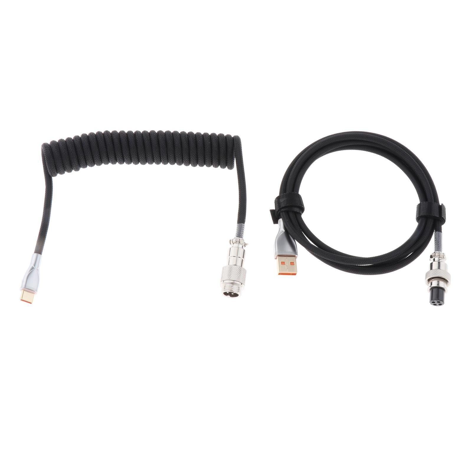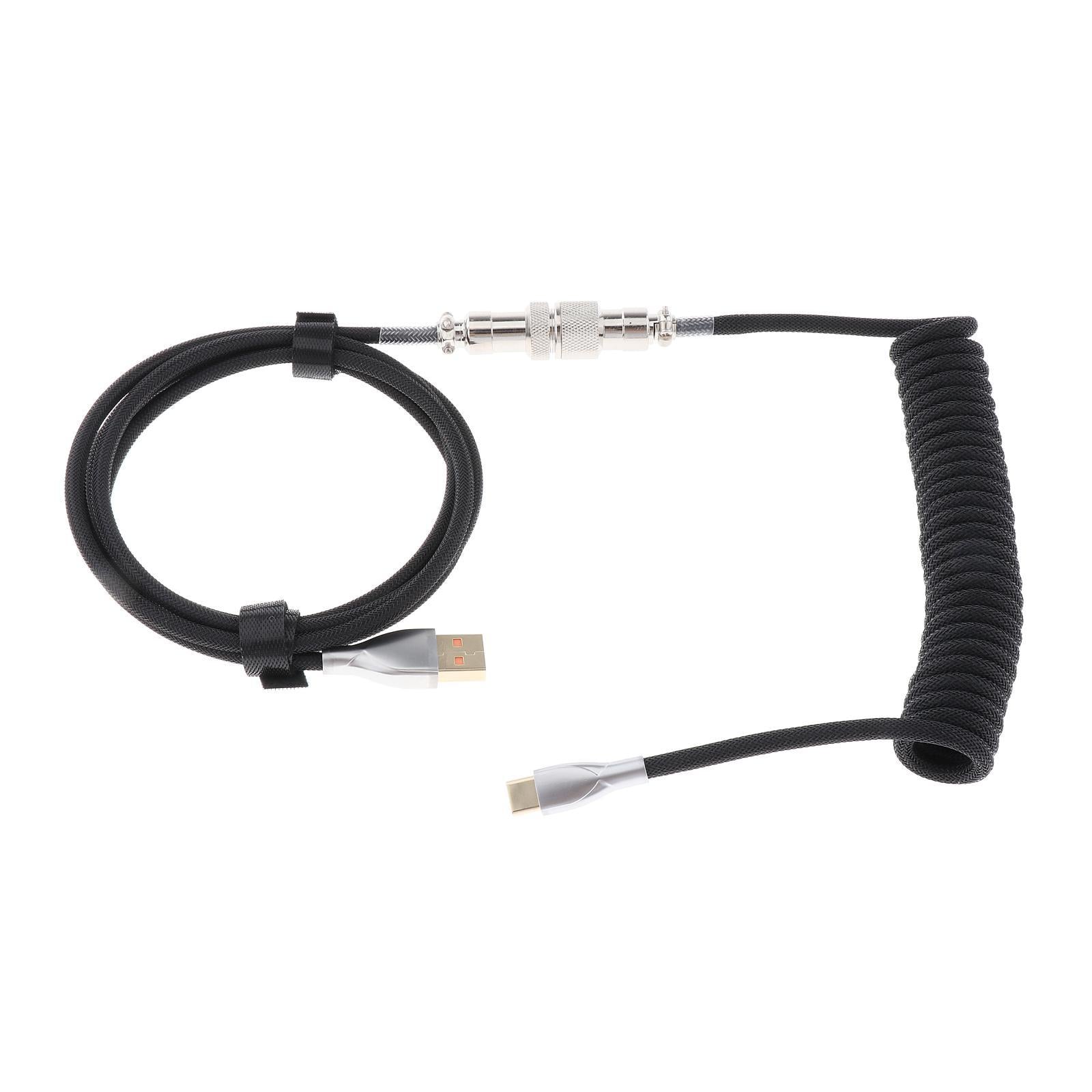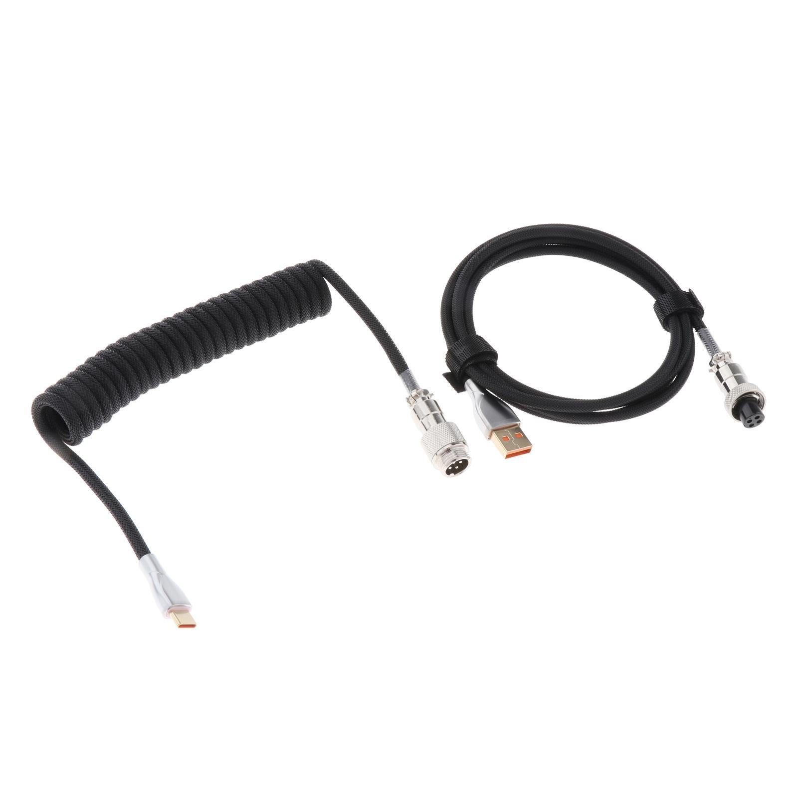 1.8M Coiled Cable Wire Mini Micro USB for Mechanical Keyboard Game Console Black