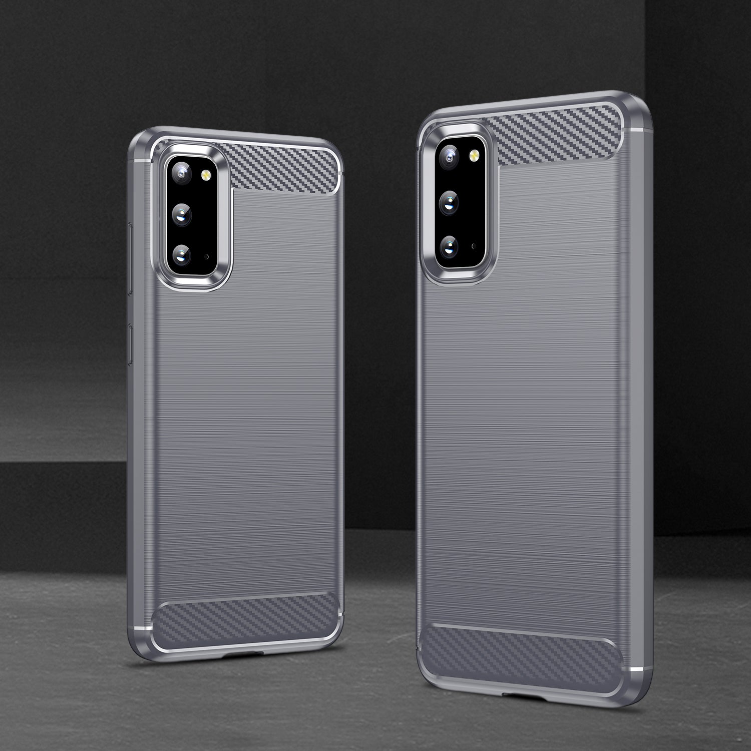 1.8mm Carbon Fiber Brushed Texture Anti-fingerprint Soft TPU Anti-drop Phone Case Cover for Samsung Galaxy S20 4G/S20 5G - Grey
