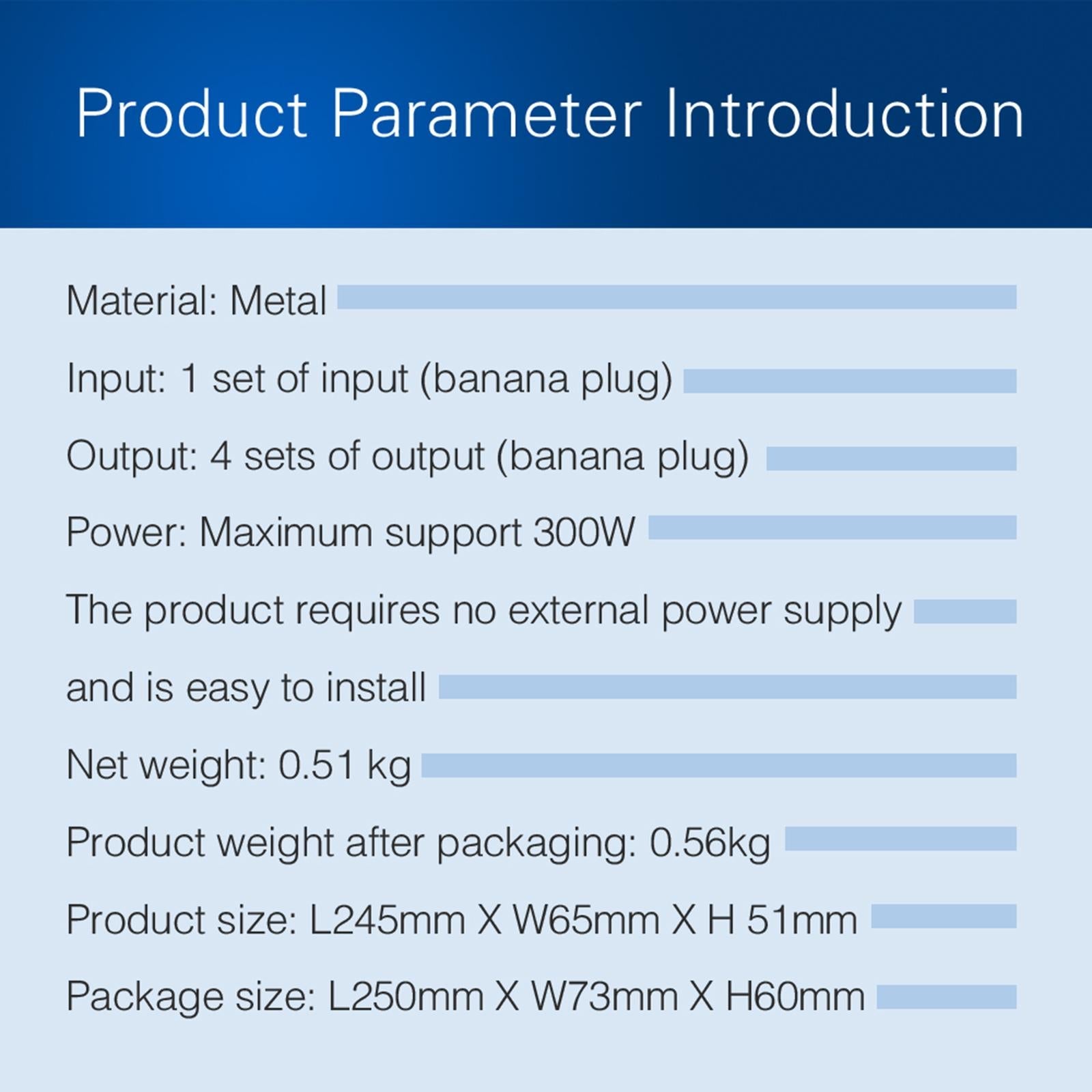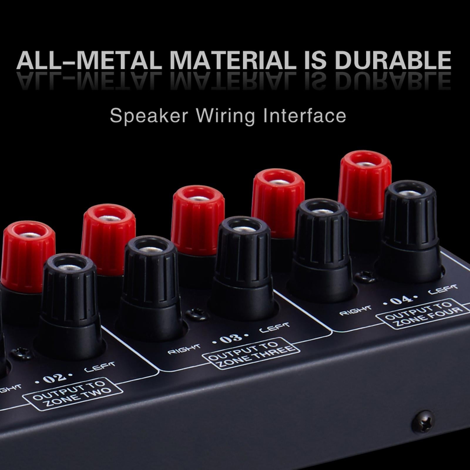 This distribution panel can solve the problem of allocating one set of stereo inputs to four sets of speakers at the same time.