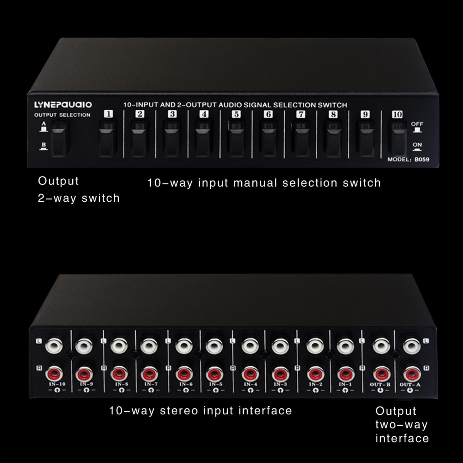 10 in 2 Out Audio Frequency Signal Selector Double Ways Switcher for Phones
