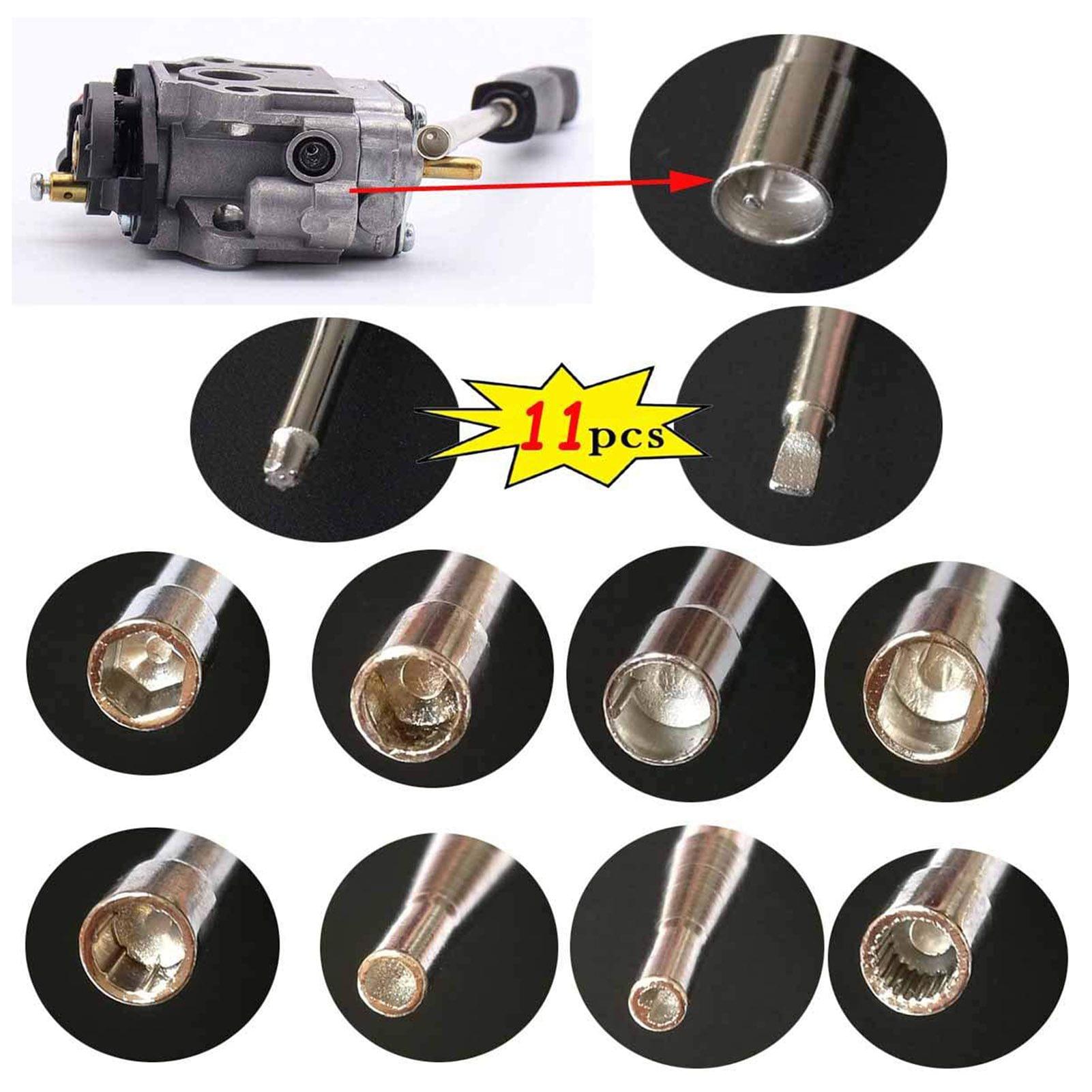 Features:Used to adjust your 2 cycle small engine carb.10pcs carburetor adjusting tool kit including: 21-Teeth Splined 7-Teeth Splined Single D Small Head Single D Double D Pac Man Small Head Pac Man Hexagon Shapda Six Star and carburetor cleaning tools.Made of high-quality stainless steel wear resistant and long lasting. With ergonomic handle comfortable to grip and stable to use.Easy to tell 1/4 turn increments on setting mixture ratio with square handles.Specifications:Material: stainless steelQuantity: 10pcsPackage size: 23*17*3cmPackage weight: 430gPackage list:10 Pcs Carburetor Adjustment Tool Kit