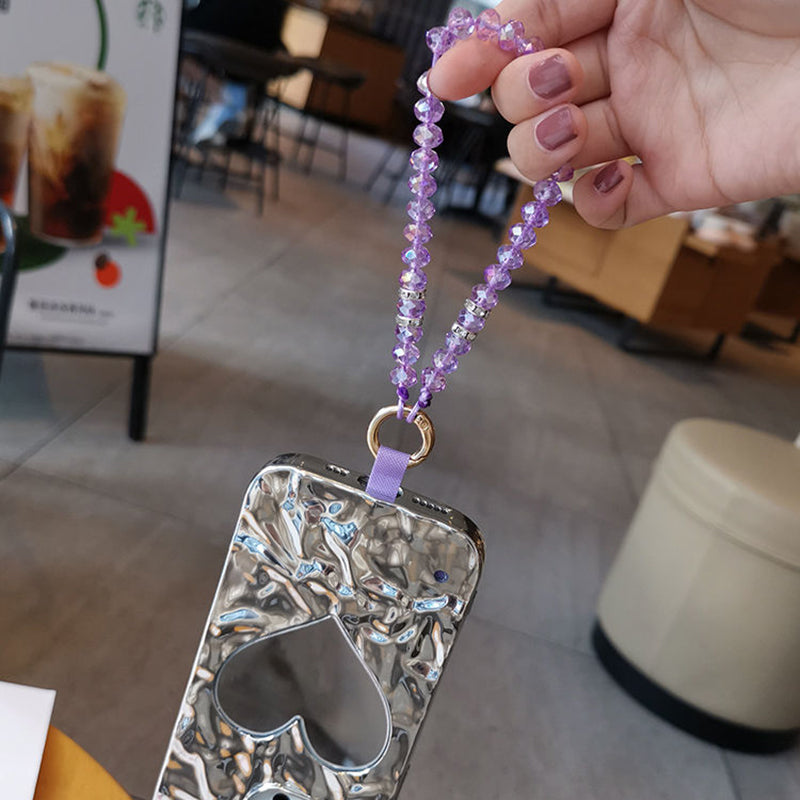 11cm Phone Wrist Strap Beads Bracelet Lanyard Universal Phone Short Strap with Tether Tab - Grape Purple+Black