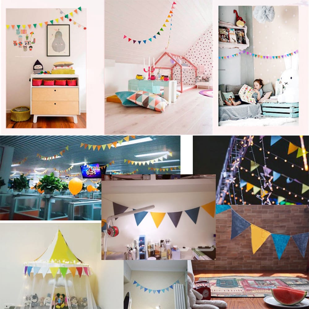 12 Flags Felt Bunting Multi-Colored Pennant Fabric Triangle - Green Series