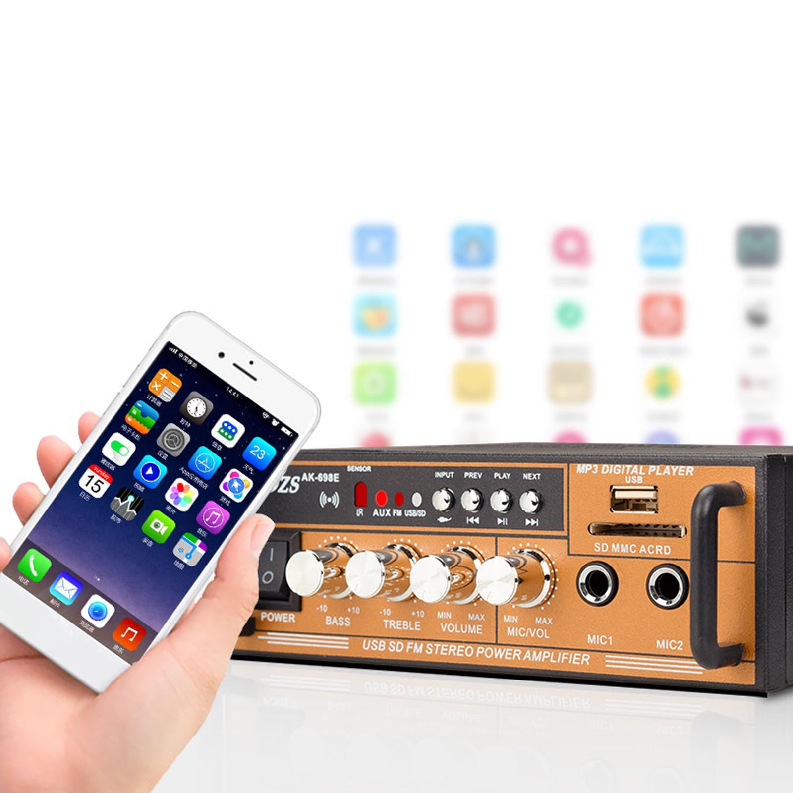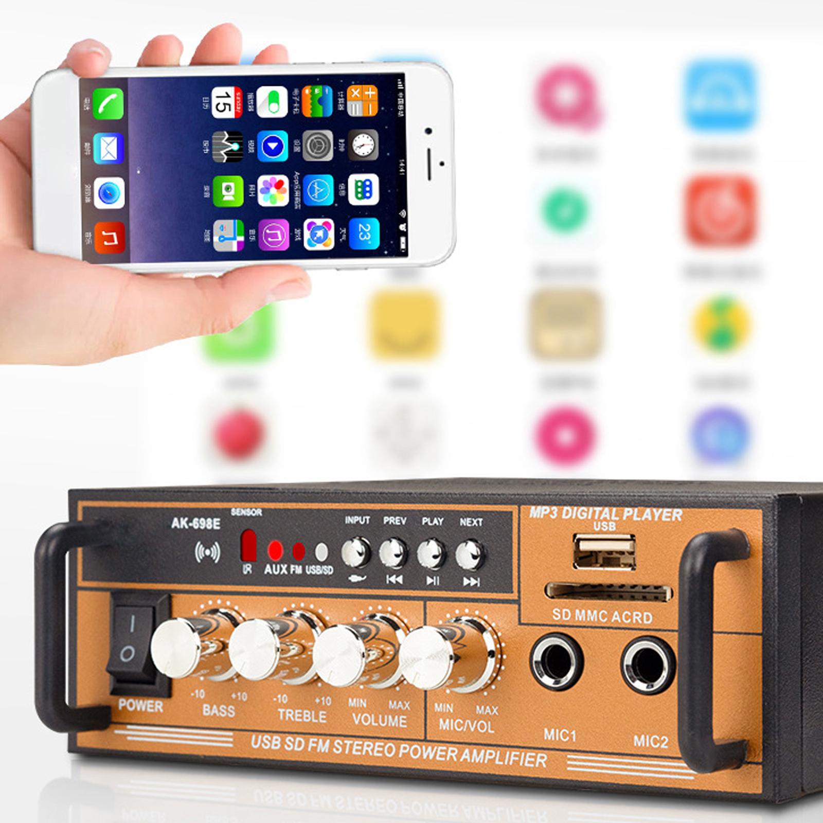 60W+60W Power: This 2 channel Bluetooth mini audio audio amplifier provides 60W+60W peak power, suitable for your home theater acoustic sound system or your car. With mini compact size(16x10x5cm/6.30x3.94x1.97inch) makes it easy to carry.