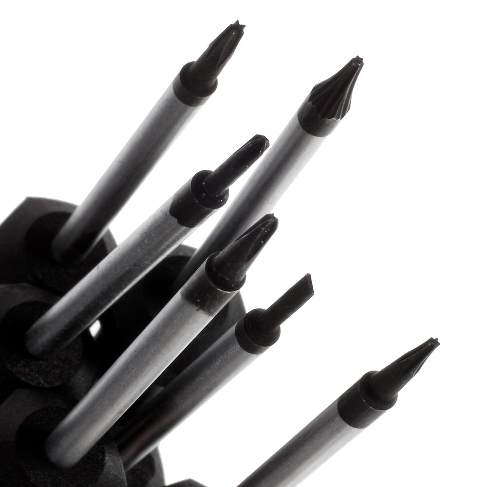 - This tool assortment includes the most common screwdrivers, spudgers and tweezers for electronics opening and component manipulation