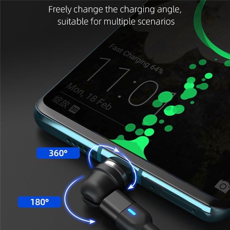 1m USB to 8Pin / Type-C / Micro Rotatable Connector 3A Magnetic Charging Data Cable - Black
