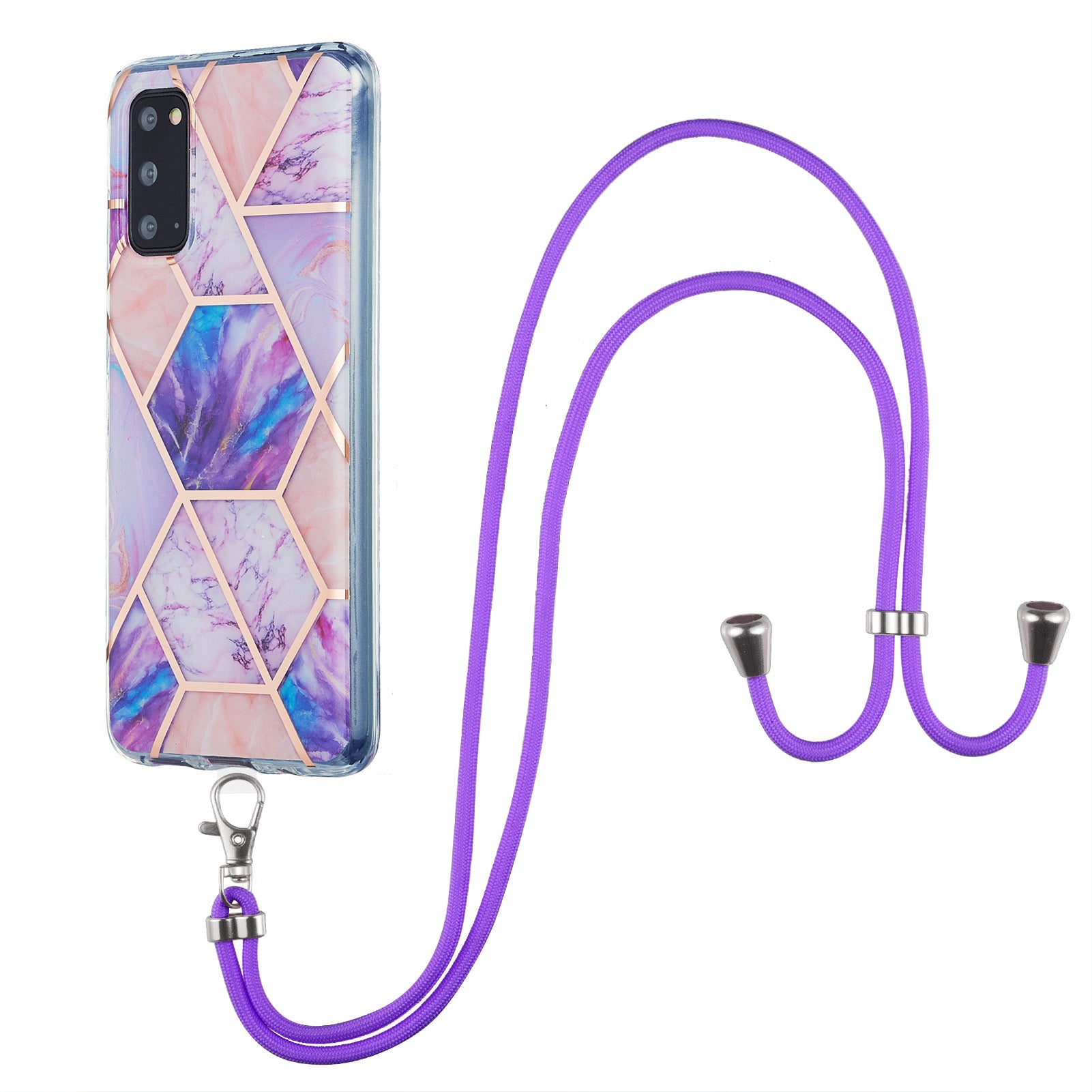 2.0mm IMD Electroplating Marble Pattern Protective Shell Case with Lanyard for Samsung Galaxy S20 4G/S20 5G - Light Purple