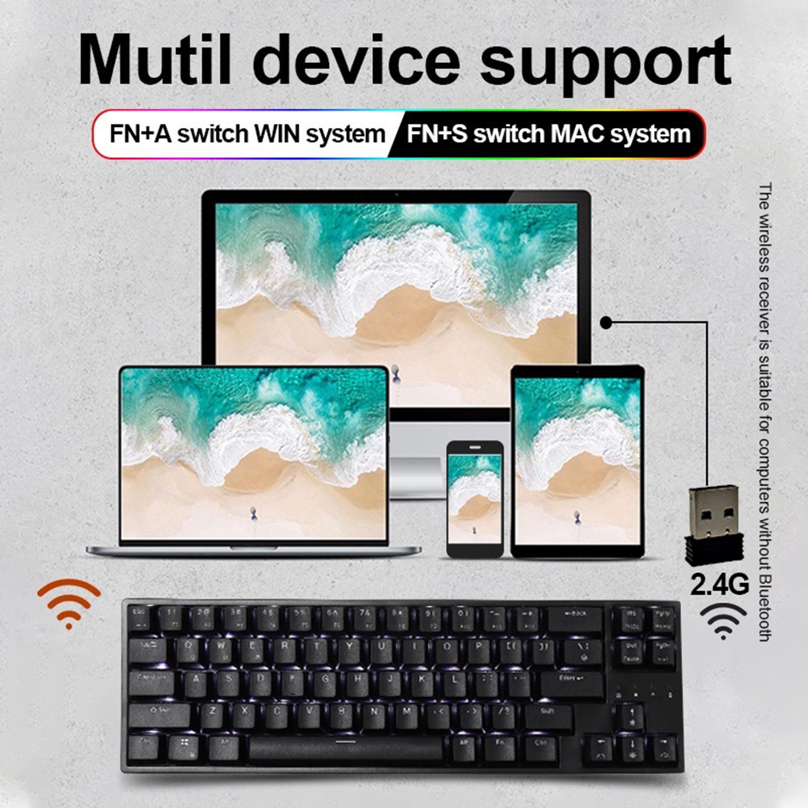 2.4Ghz RK68PLUS 68 Keys Gaming Keyboards for Laptops Home Brown Switch Black