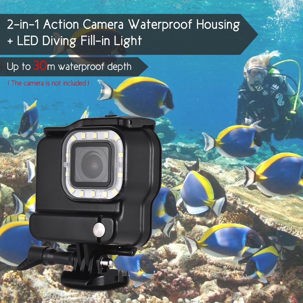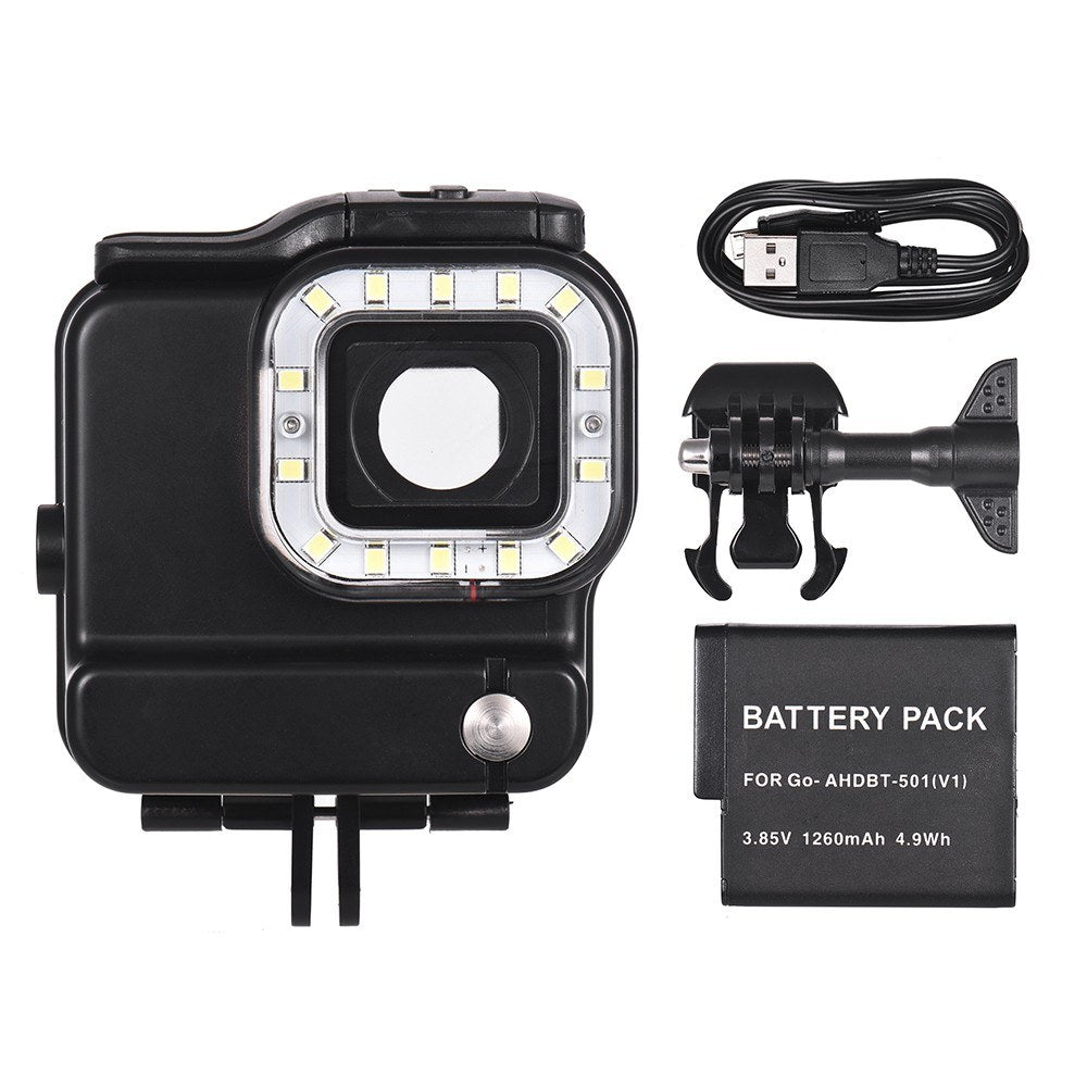2-in-1 waterproof housing + LED diving light with mounting adapter, specially designed for GoPro Hero 6/5 action cameras