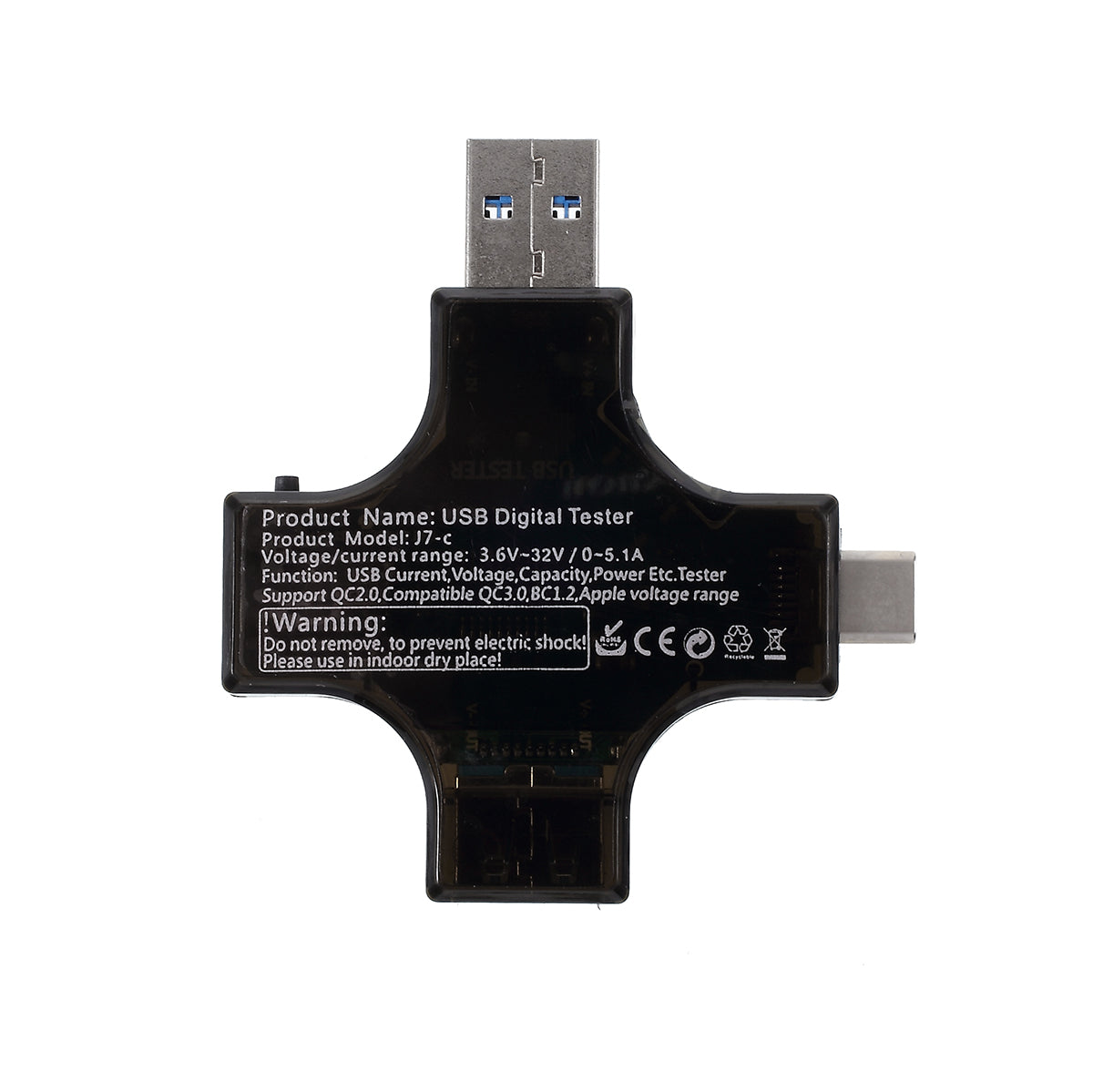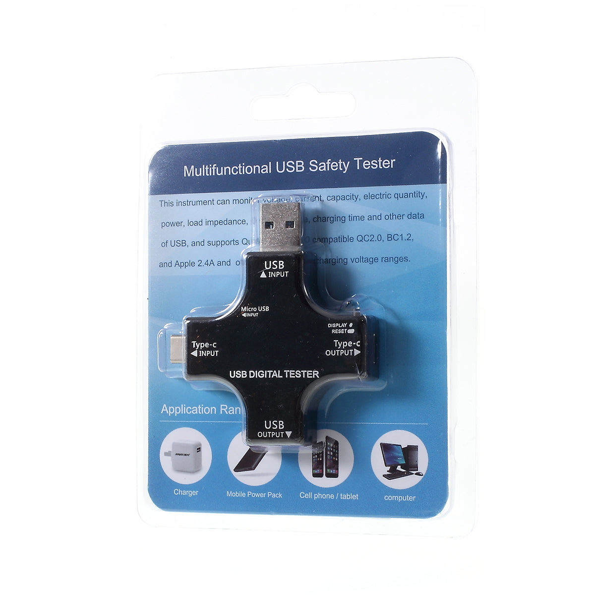 It can be used to test the max output current of USB charger, test capacity and electric energy of power bank; test charging speed and quality of USB cable