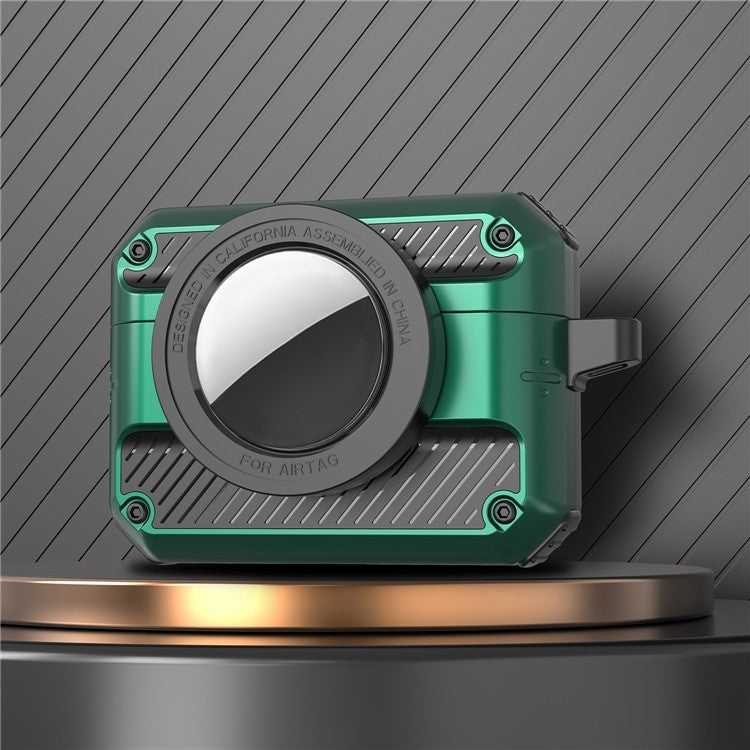 2 in 1 Protective Case for AirPods 3+AirTag Auto Spring Opening Bluetooth Earbuds Cover with Anti-Lost Hook - Dark Green