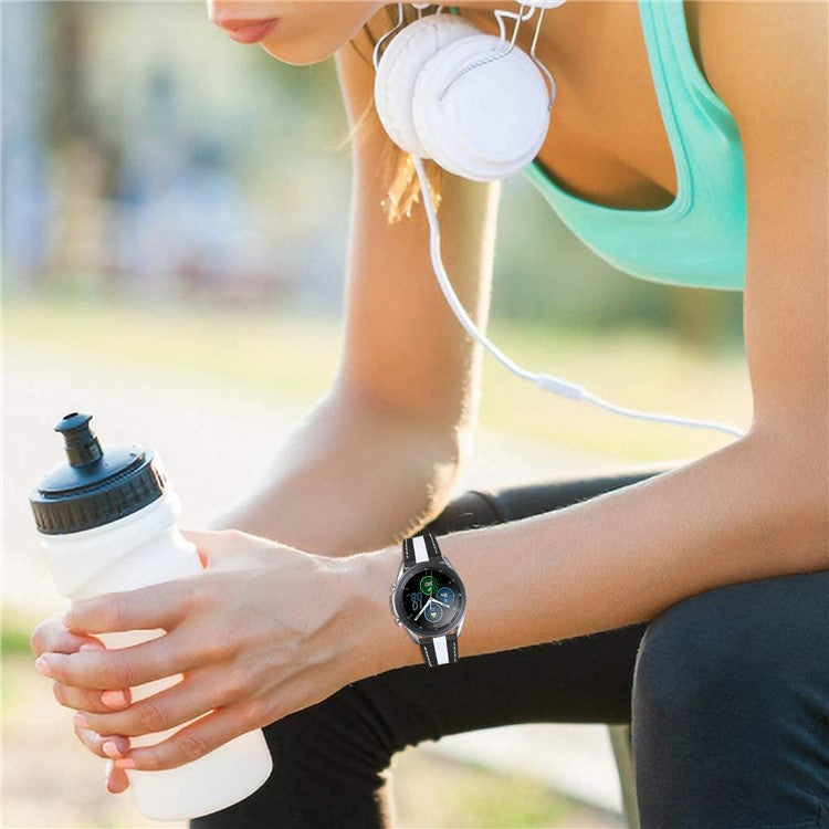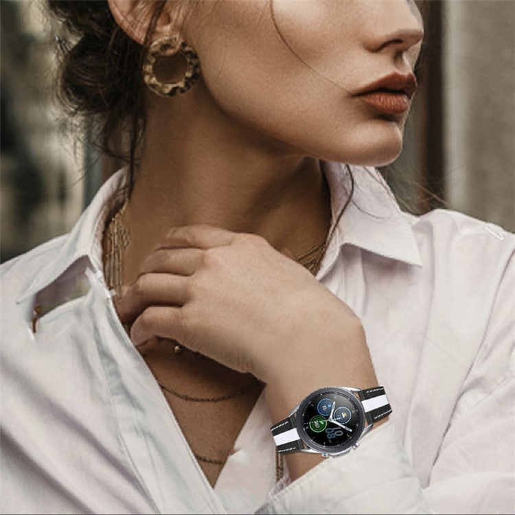 20mm Watch Strap for Samsung Galaxy Watch3 41mm/Watch 42mm Stylish Color Splicing Cowhide Leather Adjustable Watchband - Black/White